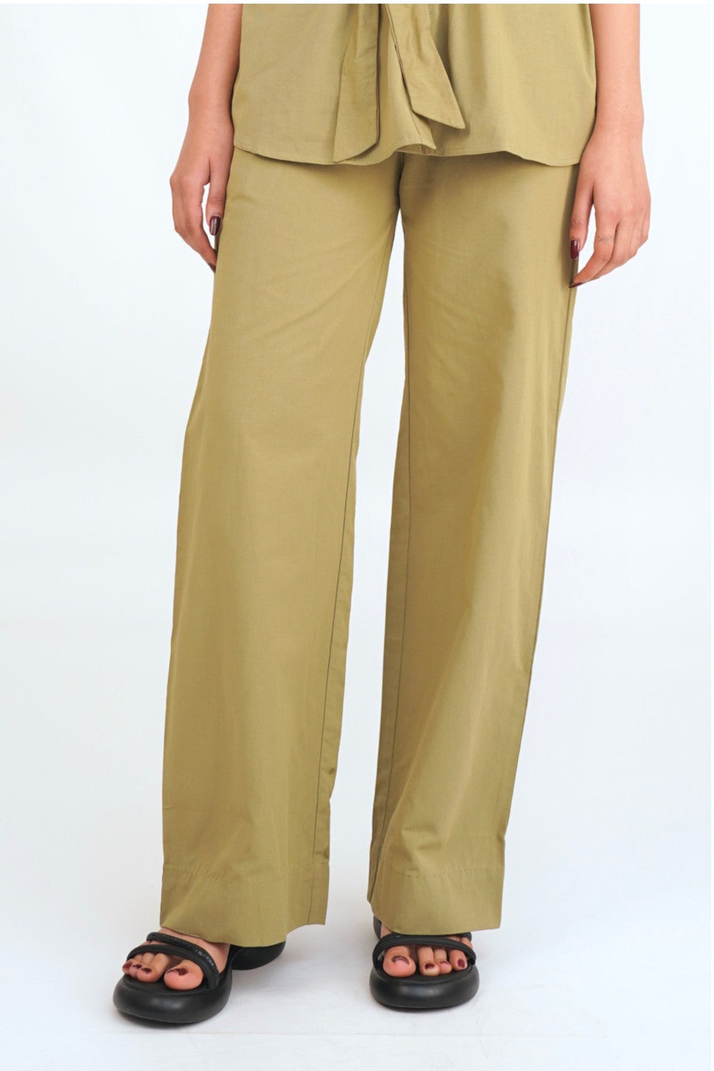 Trouser Features: High-waisted, wide-leg trousers that provide a streamlined and elegant profile while maintaining comfort.