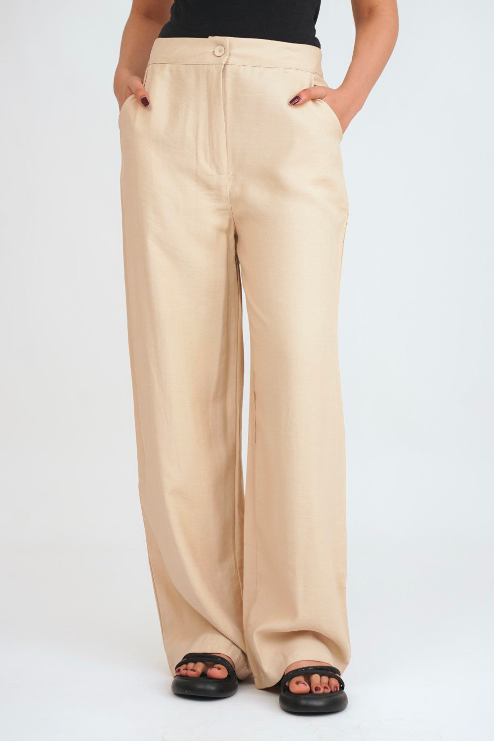 These elegant wide-leg trousers offer a sophisticated silhouette with a modern, relaxed drape, making them a versatile piece for both professional and evening wear.