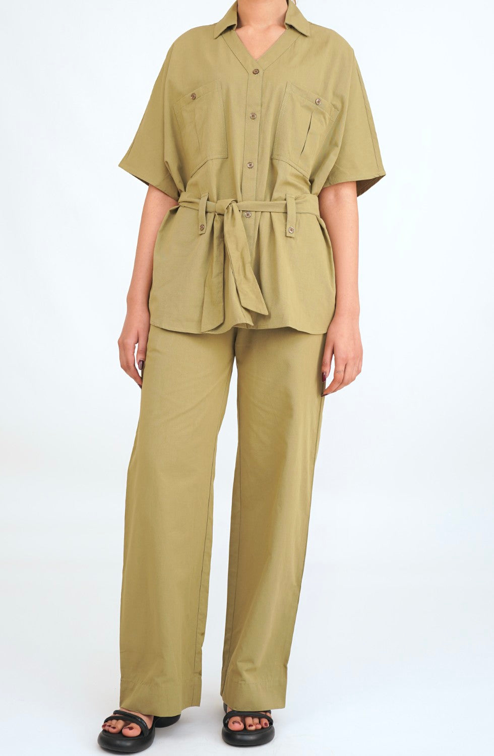This coordinated set offers a sophisticated take on utilitarian style, blending structured design elements with a relaxed, modern silhouette for a complete and effortless look.