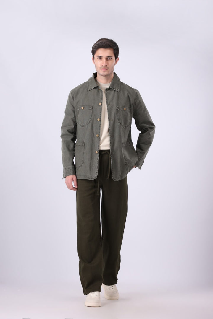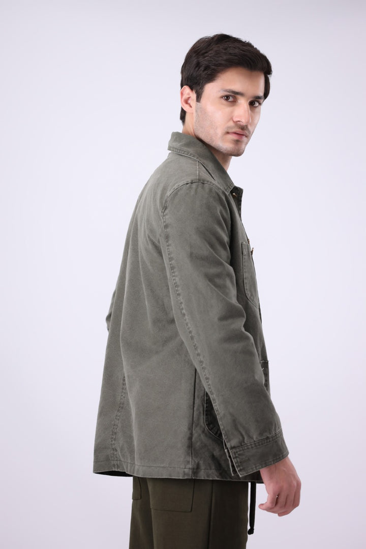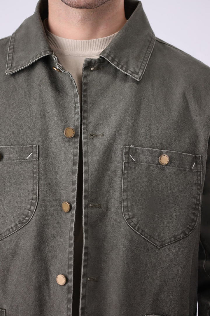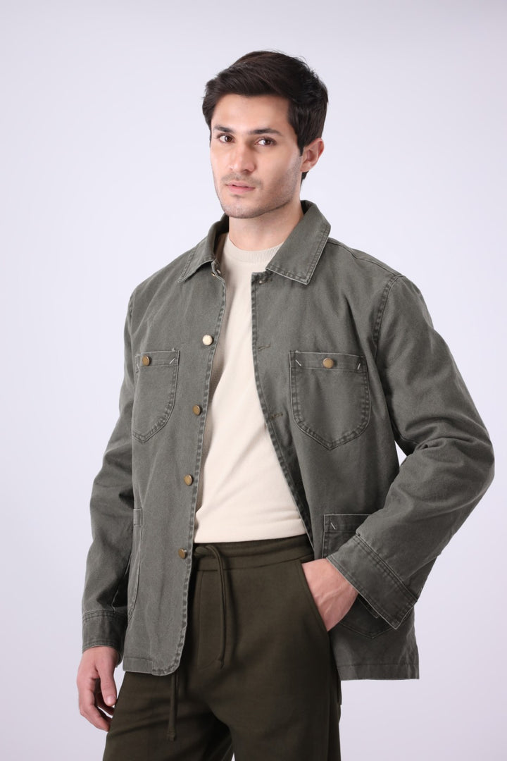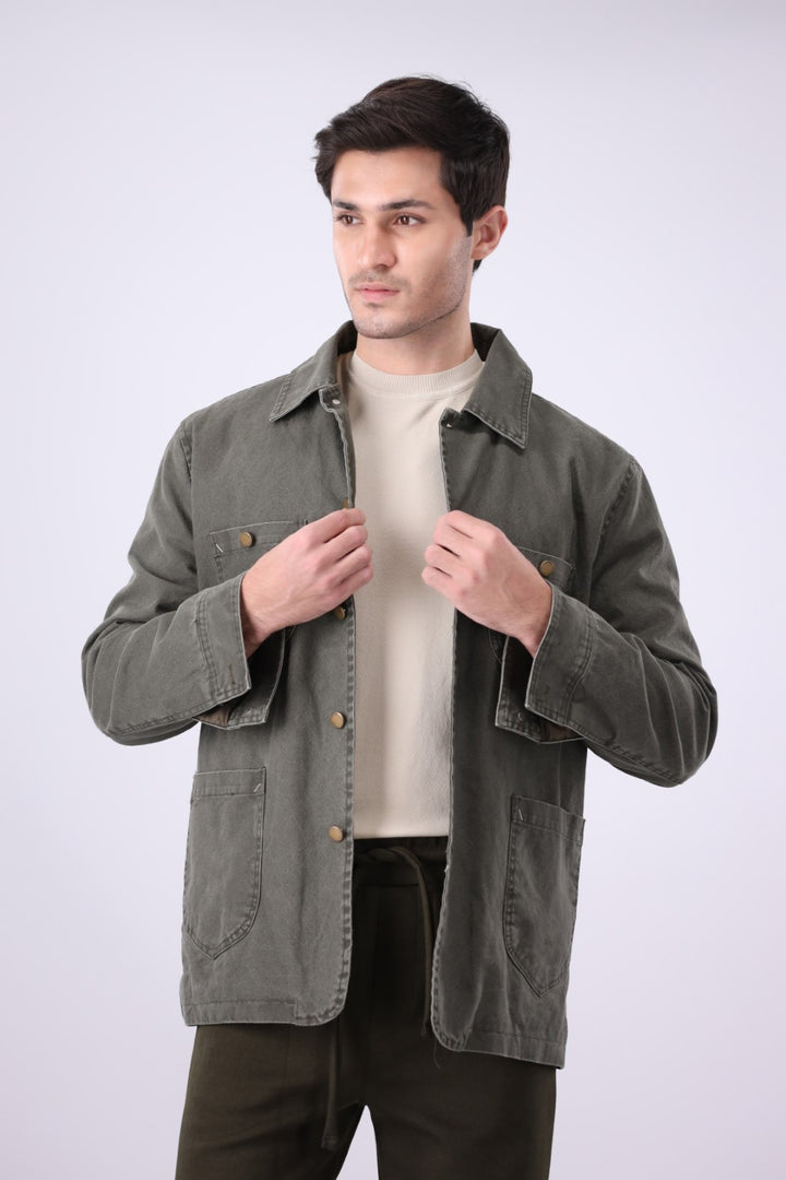 REGULAR FIT JACKET WITH SNAP BUTTON PLACKET, FRONT PATCH POCKETS WITH BUTTON, REGULAR COLLAR AND LONG CUFFED SLEEVES.