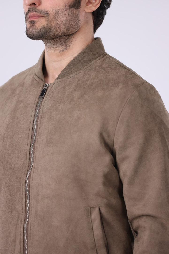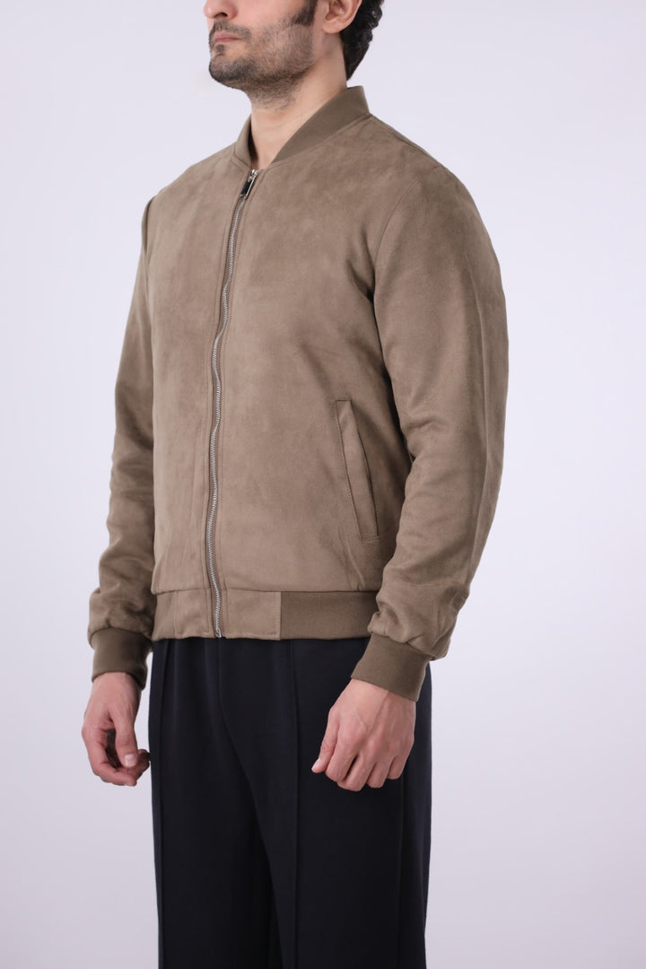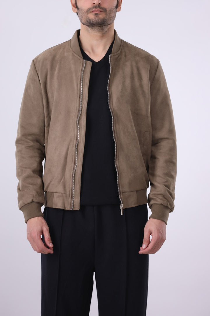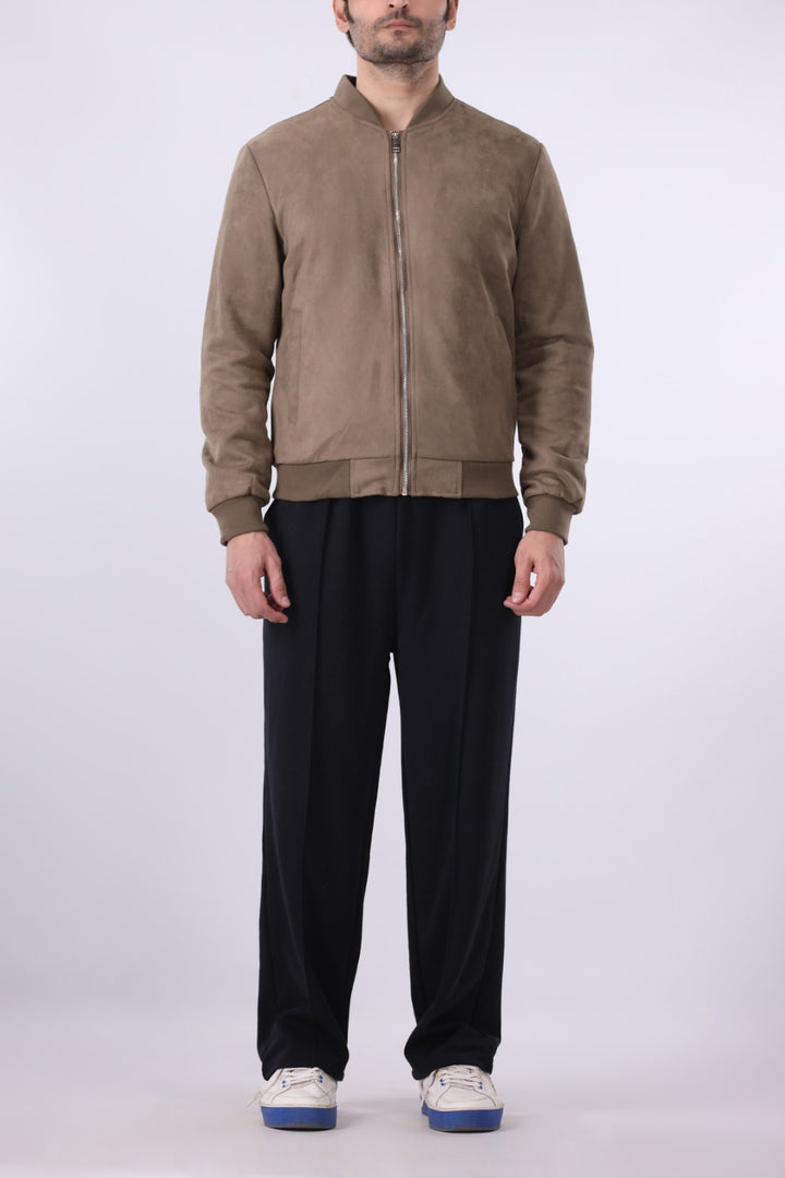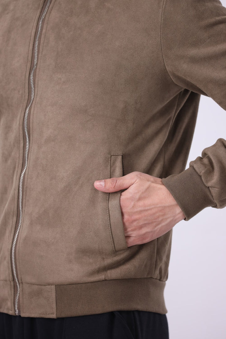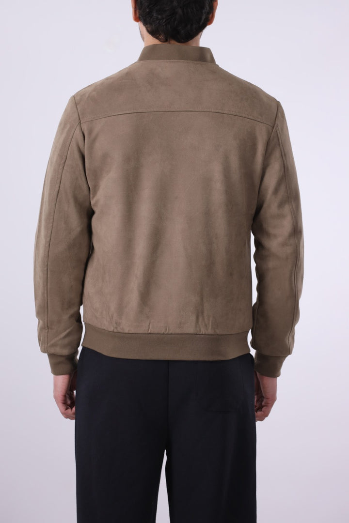 REGULAR FIT SUEDE JACKET WITH FULL-ZIP FRONT CLOSURE, RIBBED HEM AND RIBBED SLEEVE CUFF