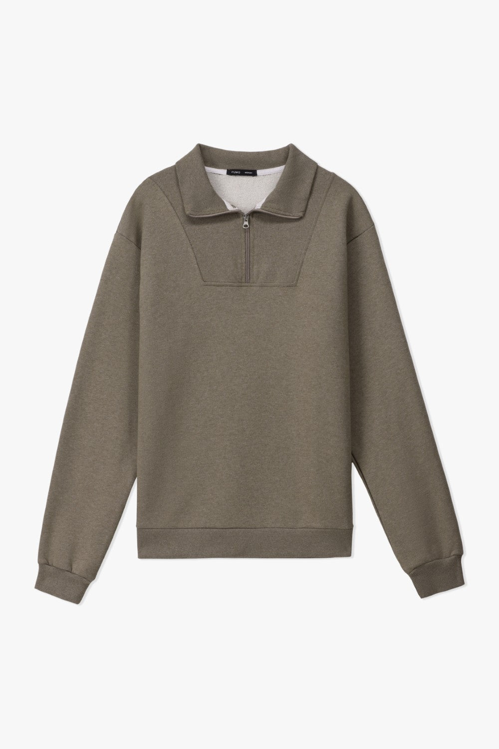REGULAR FIT MOCK NECK KNITTED SWEATER WITH QUARTER ZIP FASTENING, RIBBING AT NECK AND LONG SLEEVES