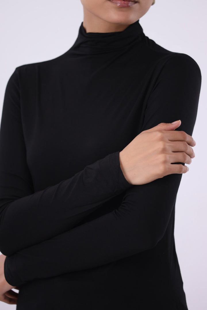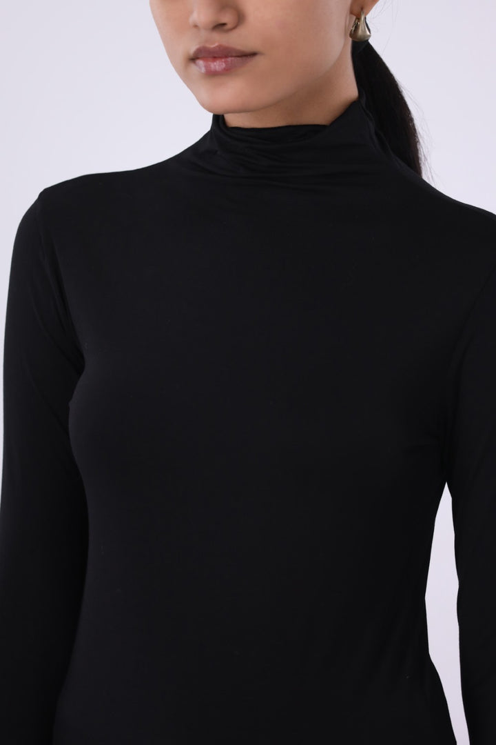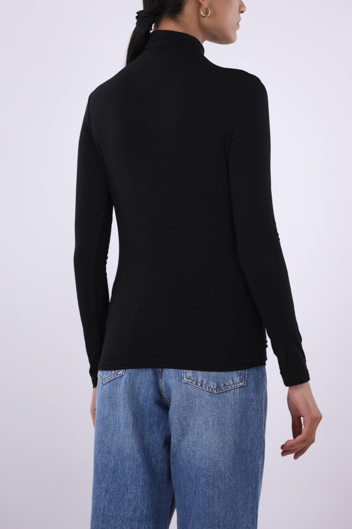 SLIM FIT STRETCH KNIT TOP WITH MOCK NECKLINE AND FULL SLEEVES