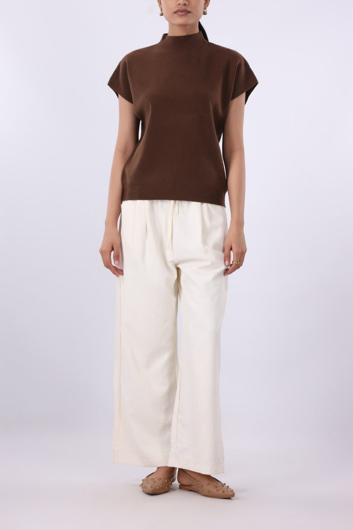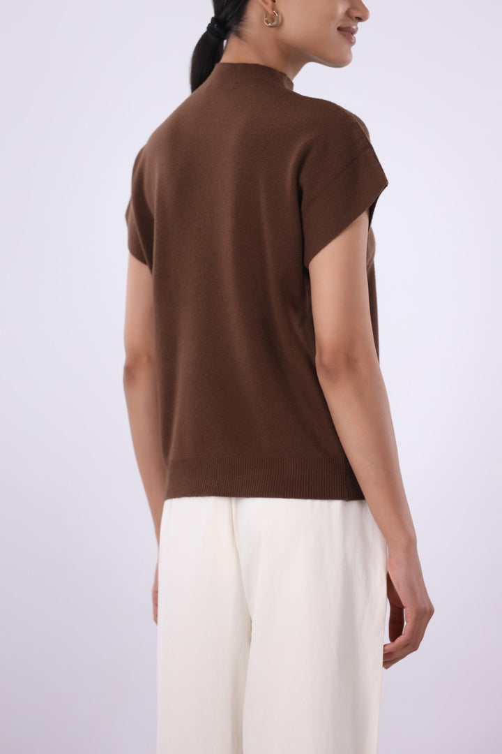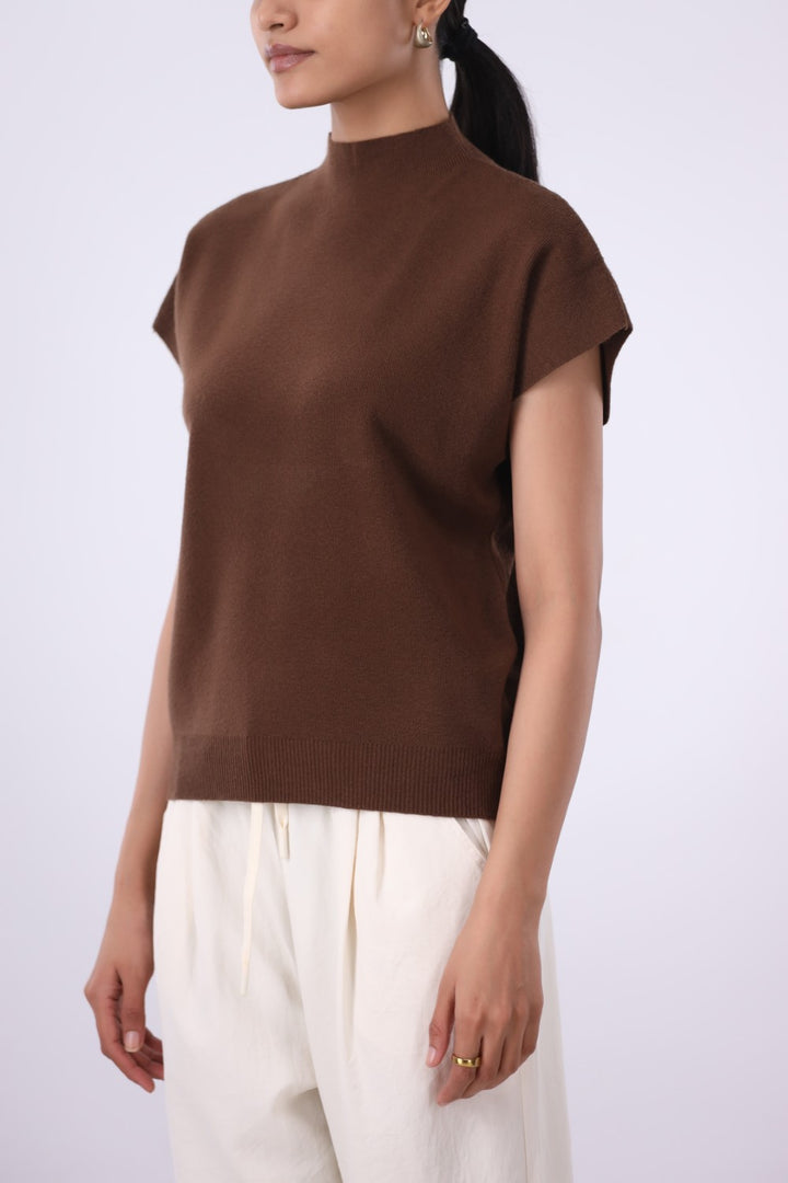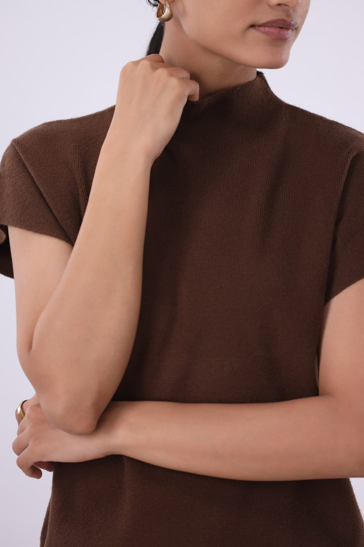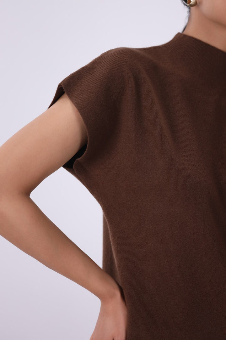 REGULAR FIT KNITTED FUNNEL TOP WITH SHORT DOLMAN SLEEVES