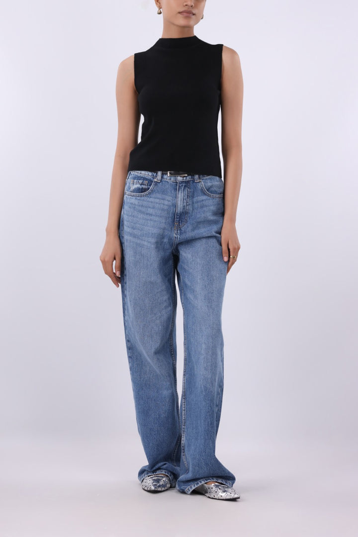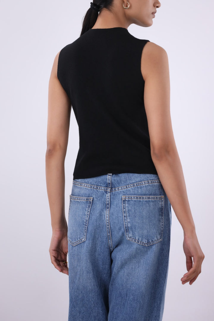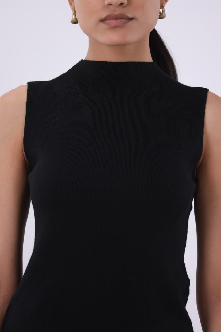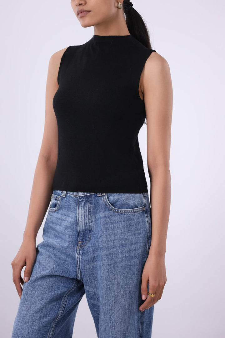 SLIM FIT KNITTED SLEEVELESS MOCK NECK TANK TOP