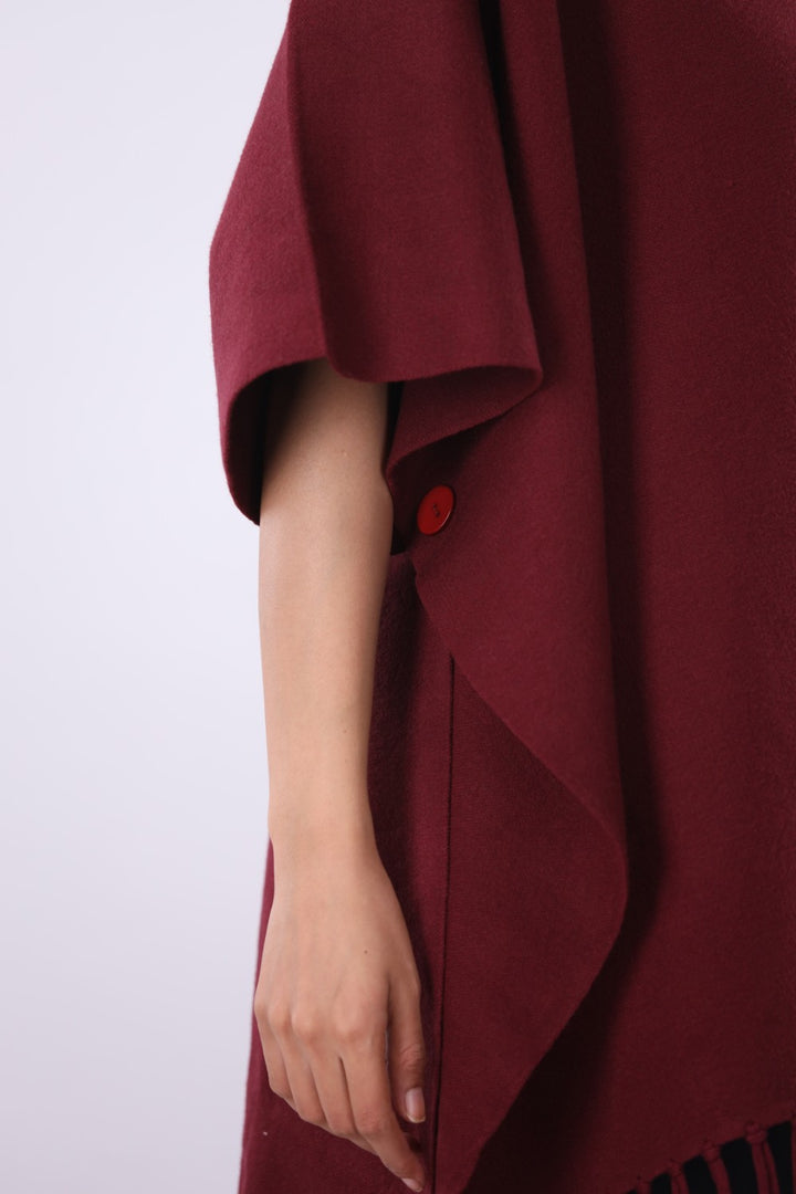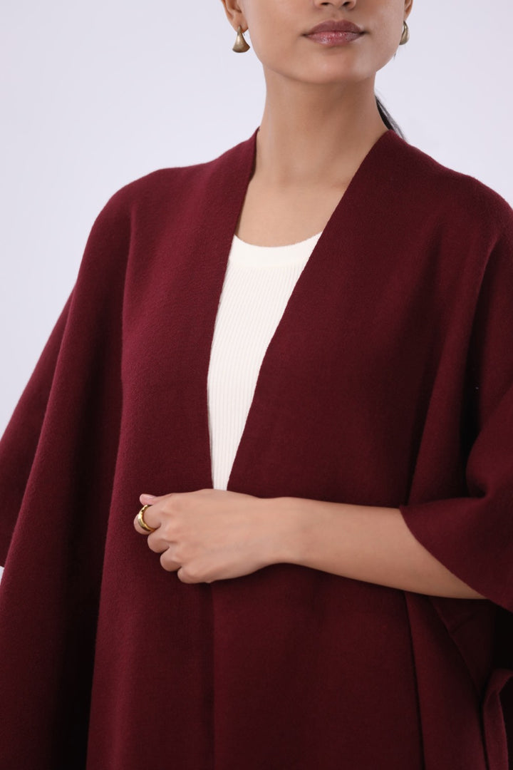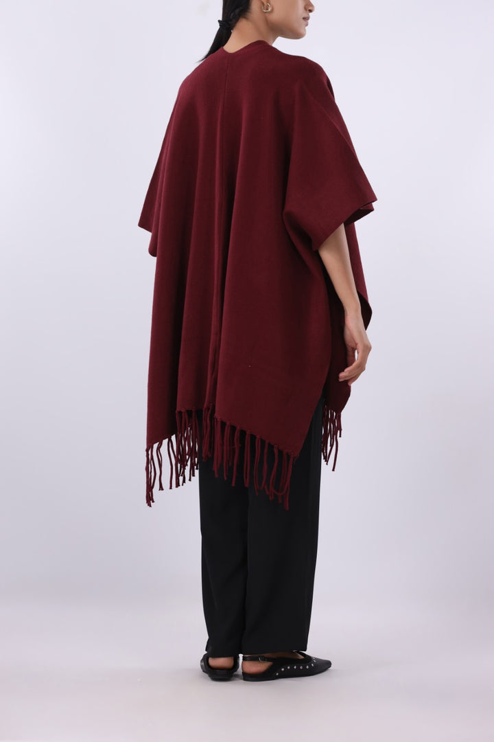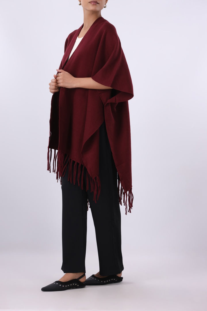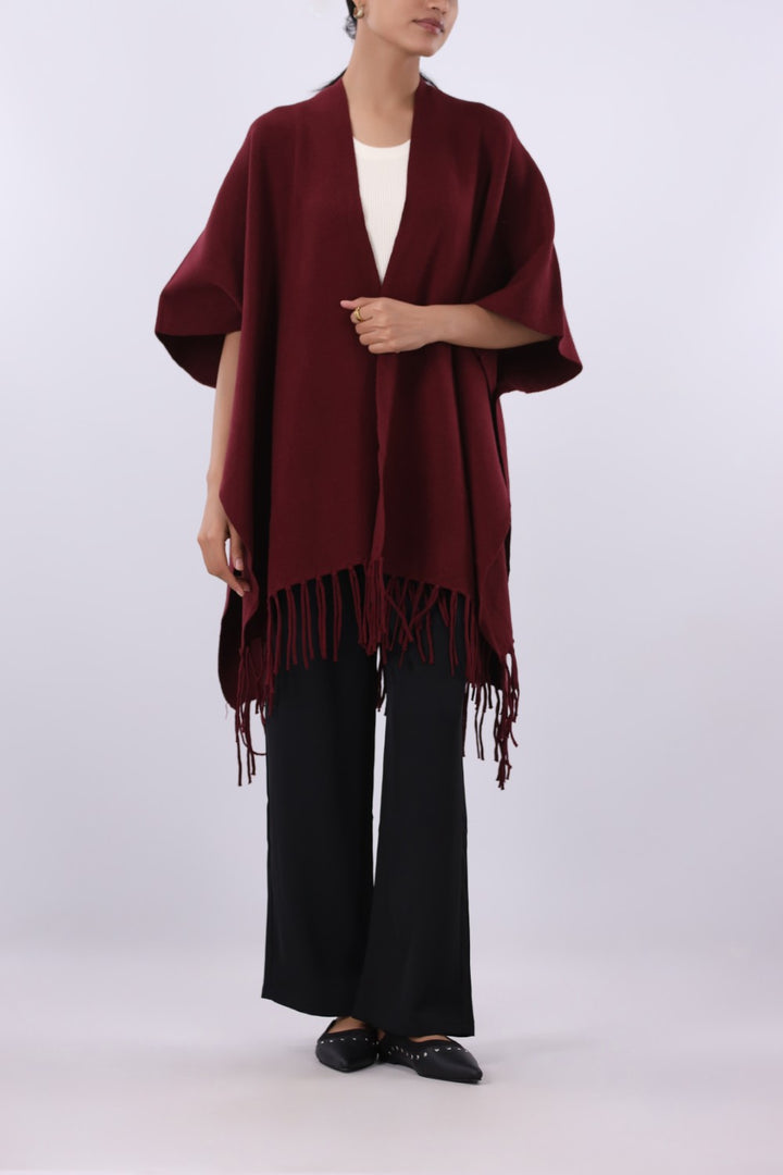 KNITTED OPEN FRONT SHAWL WRAP WITH FRINGED HEM DETAILING