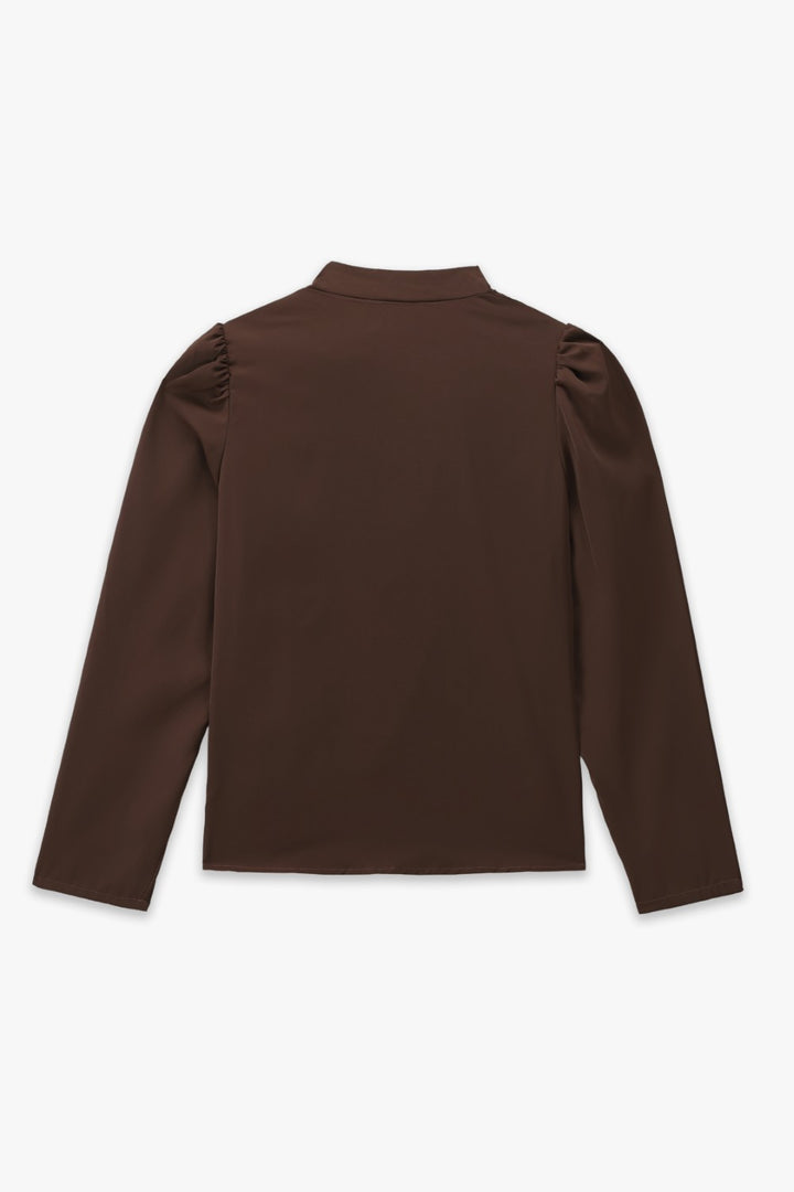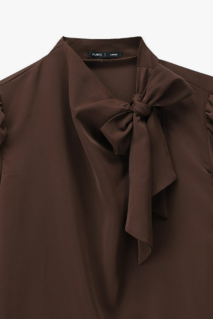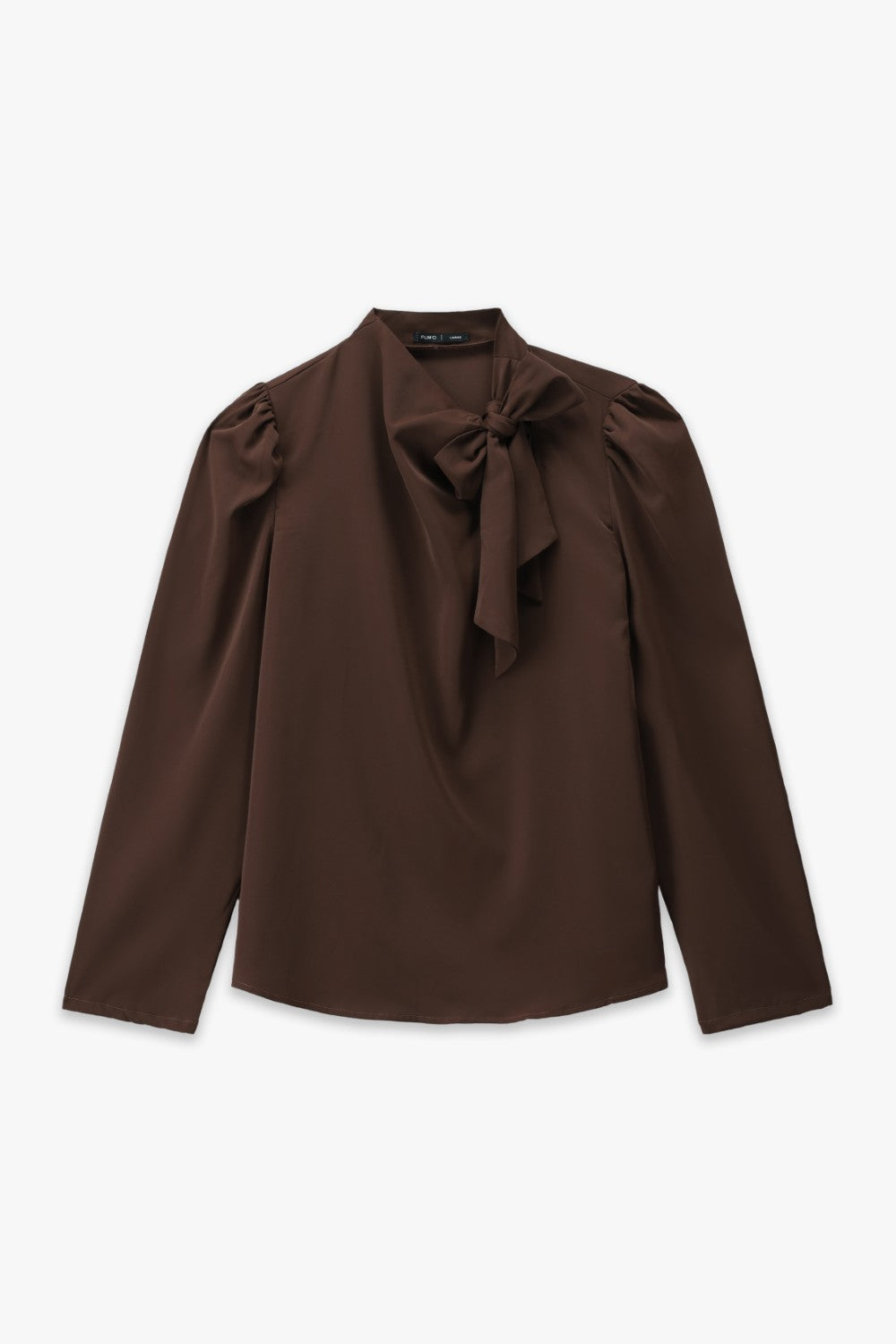 REGULAR FIT WOVEN TOP WITH TIE NECK, BOW DETAIL AND PUFFED LOG SLEEVES