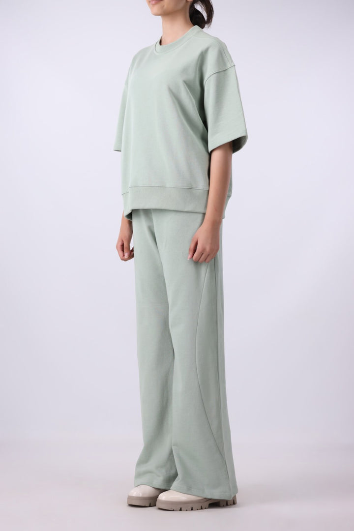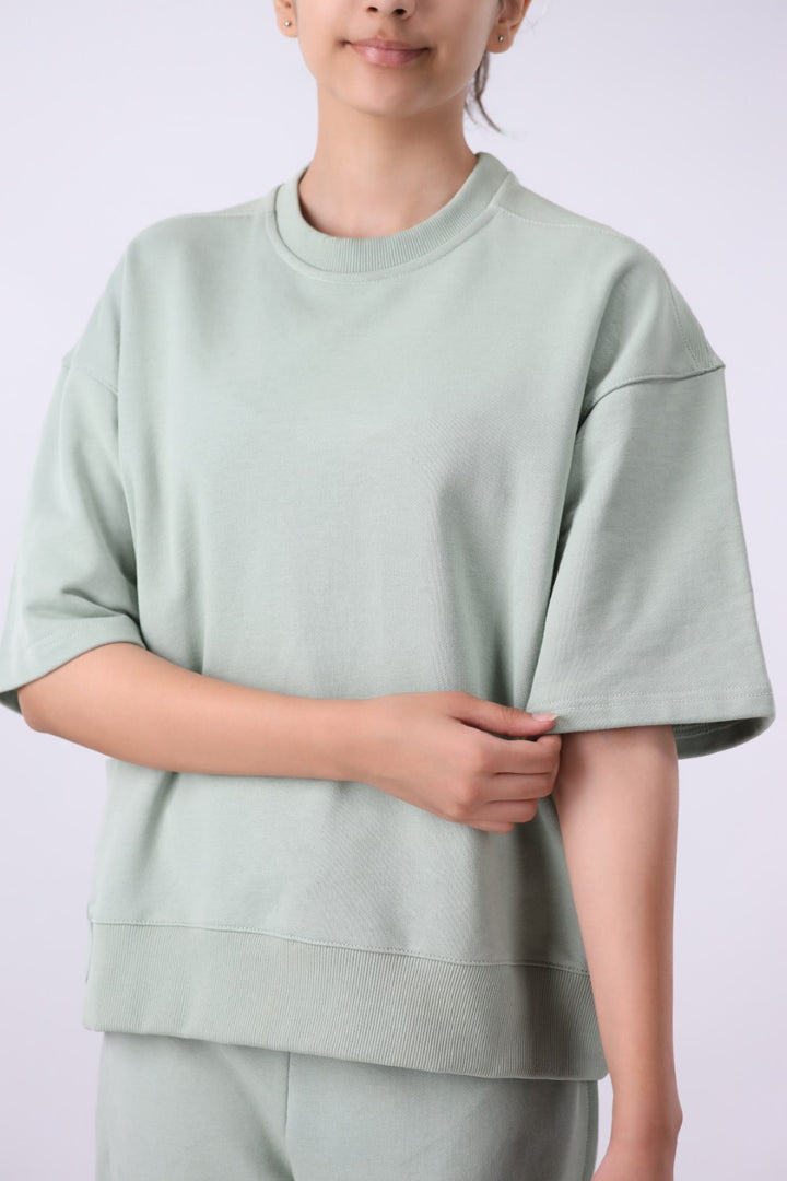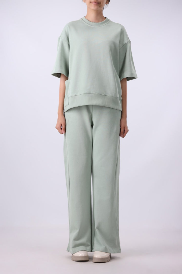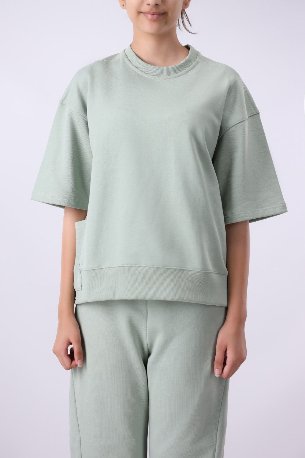 BOXY FIT KNITTED SWEATSHIRT WITH CREW NECKLINE, DROP SHOULDER, SIDE PATCH POCKET AND RIBBED TRIMS