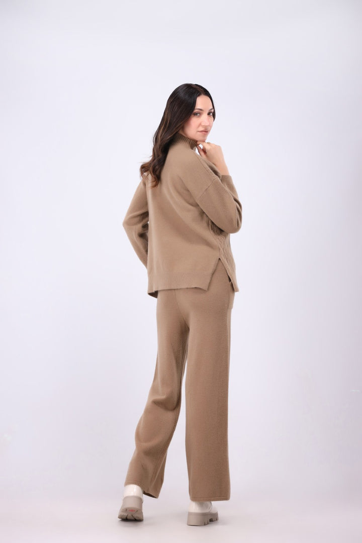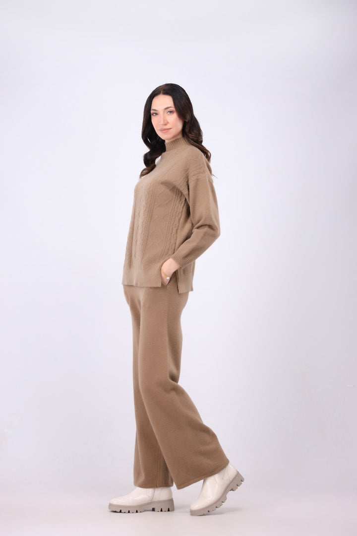 RELAXED FIT CABLE KNIT SWEATER WITH MOCK NECK AND LONG SLEEVES