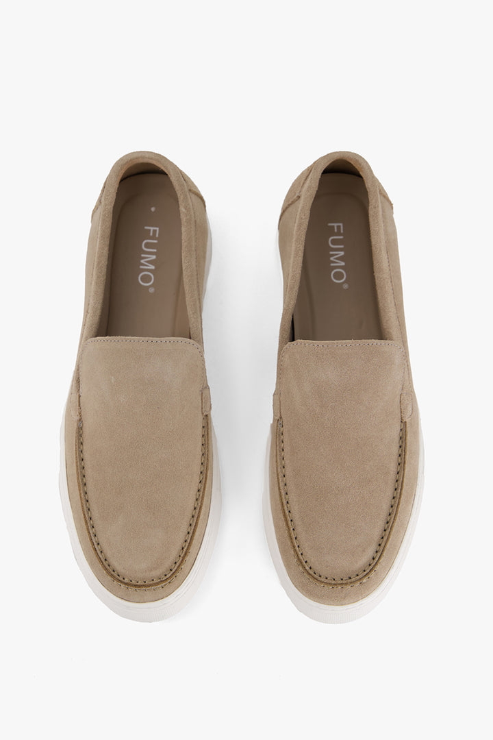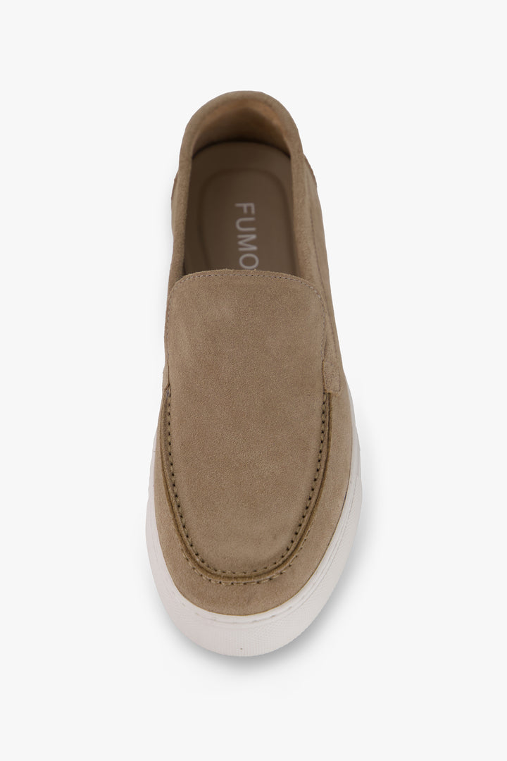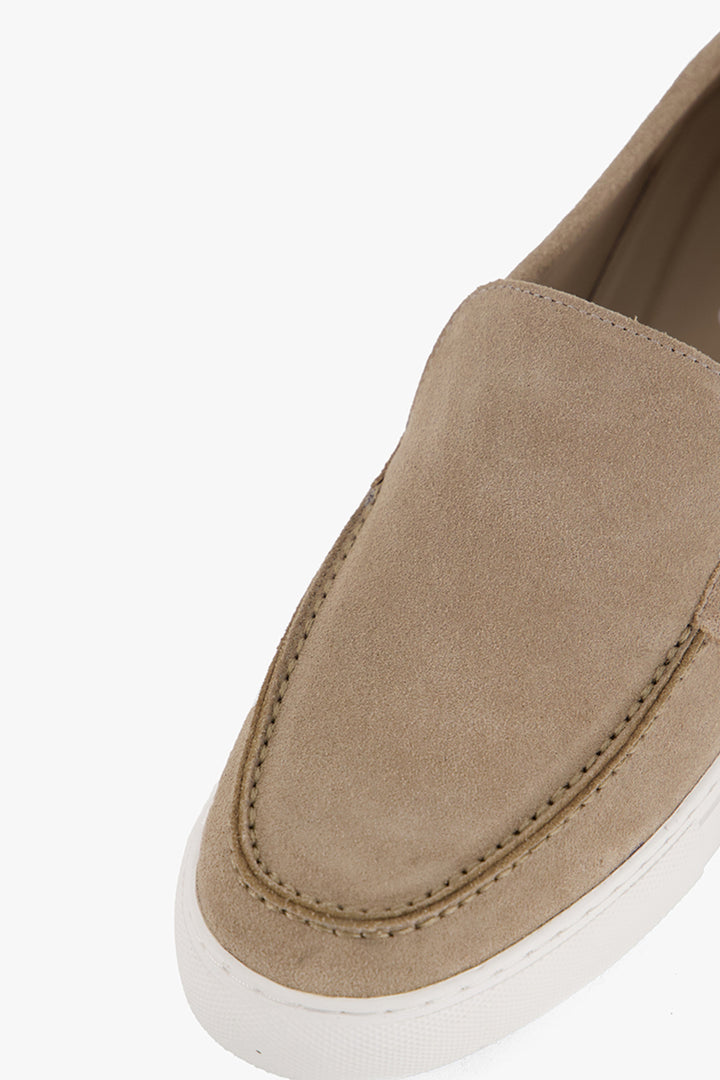 A refined essential crafted from supple leather with an exquisite suede finish, these loafers exude quiet sophistication. The rounded shape and rolled seam add artisanal depth, while the contrasting sole offers a sharp, modern finish th