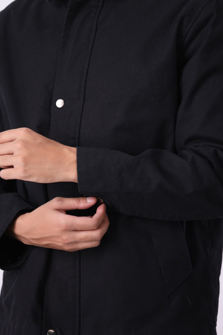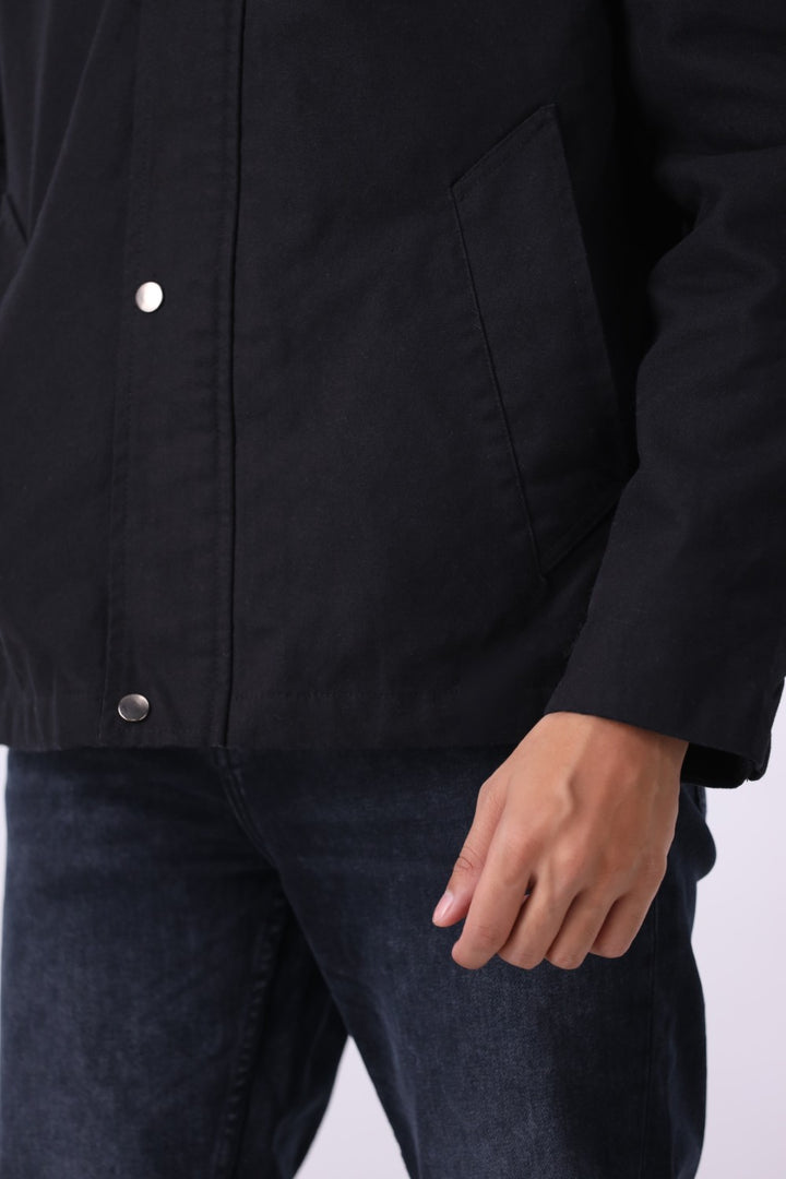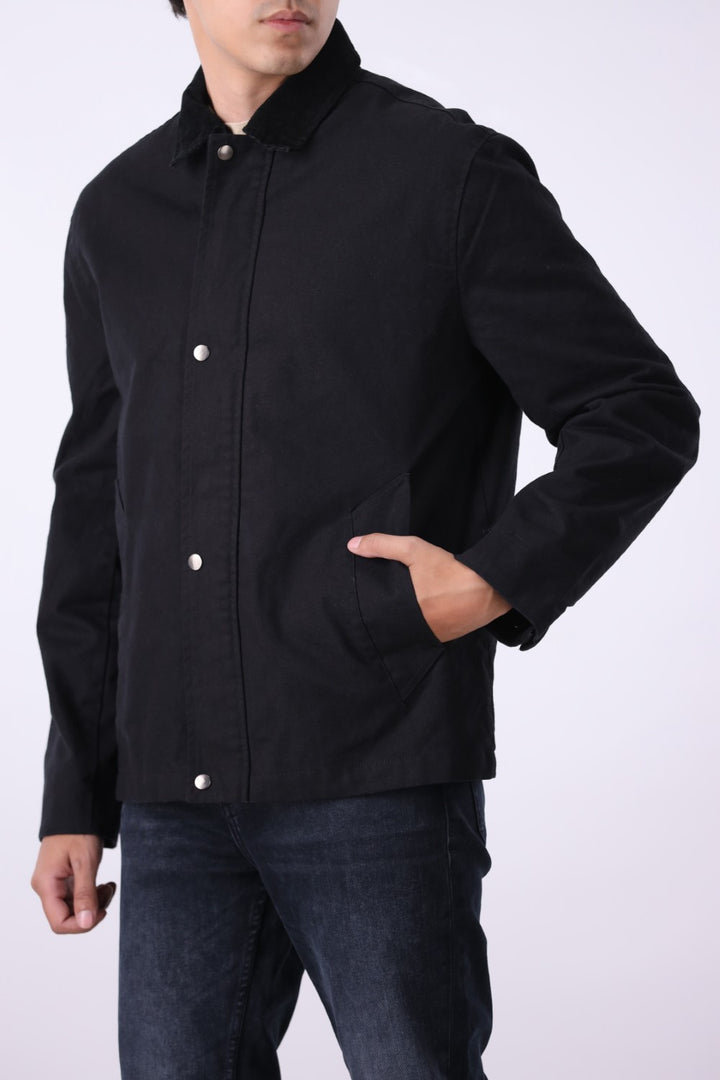 REGULAR FIT JACKET WITH SNAP BUTTON PLACKET AND HIDDEN ZIP FASTENING, REGULAR COLLAR AND LONG CUFFED SLEEVES.