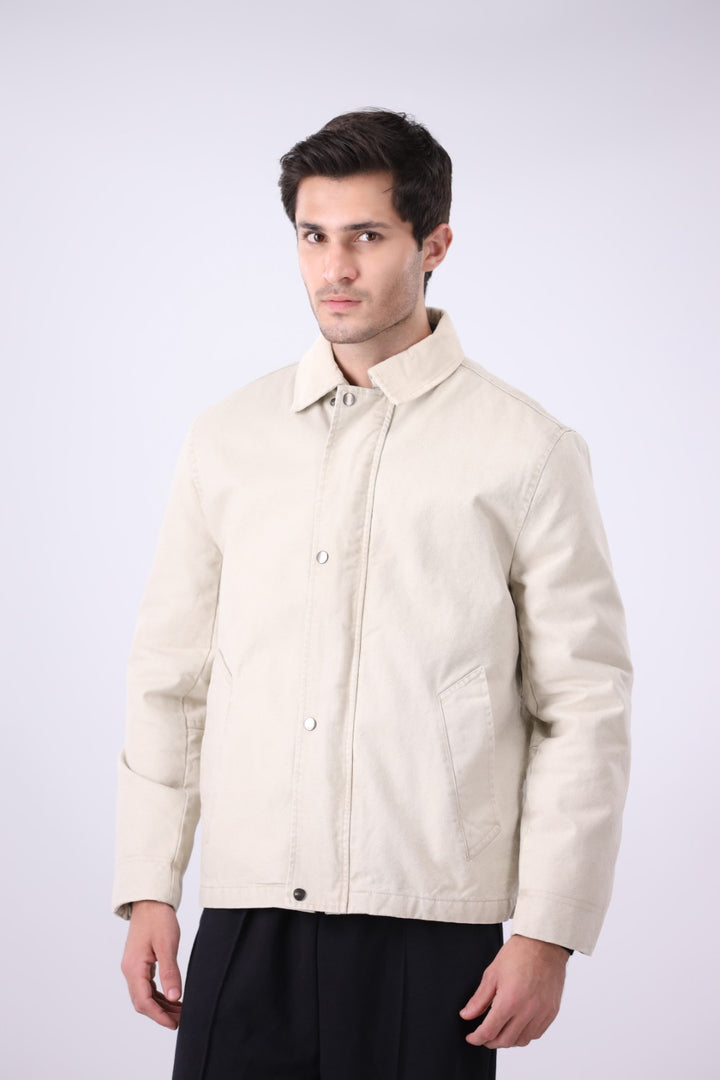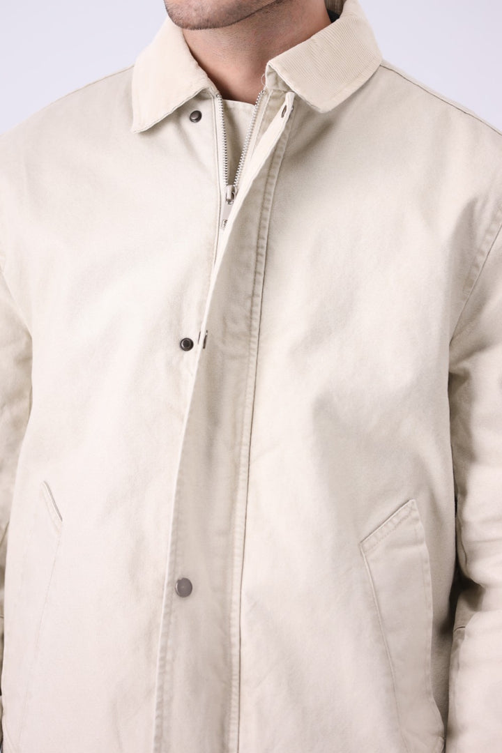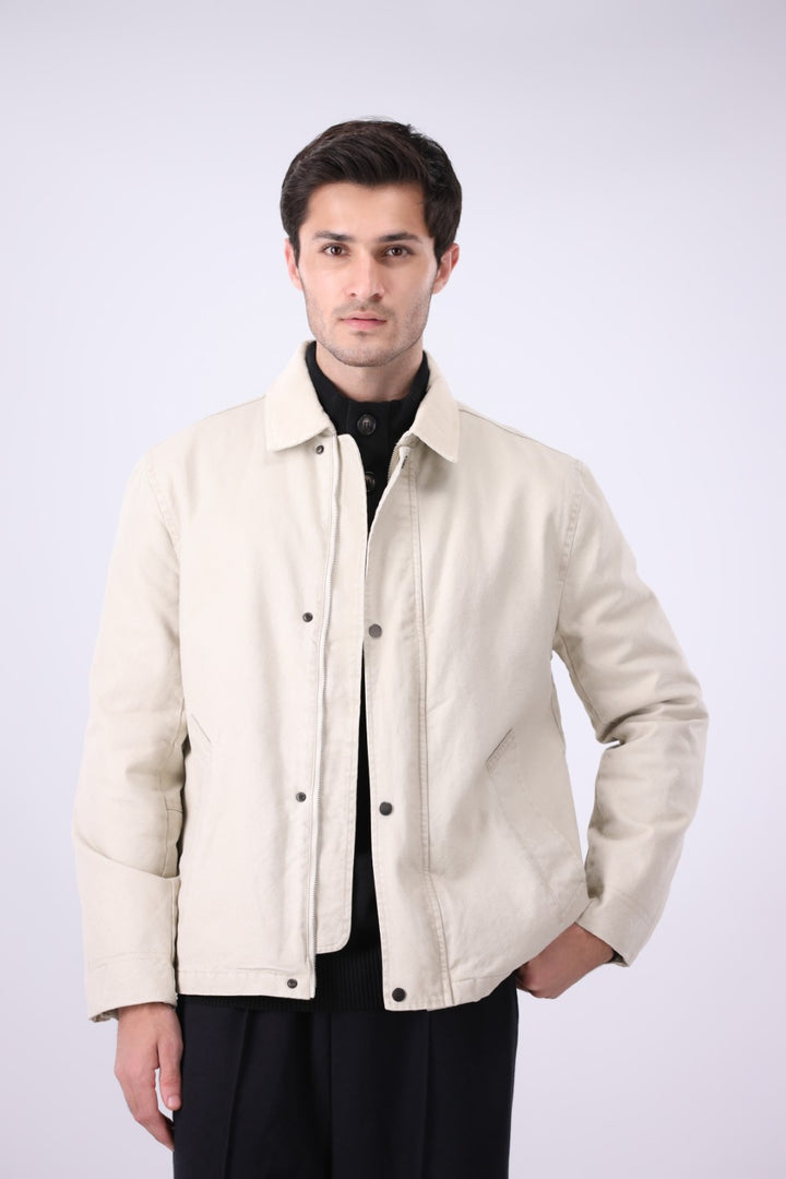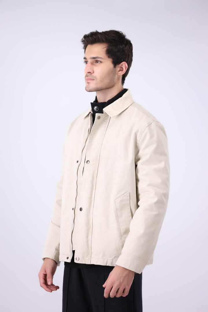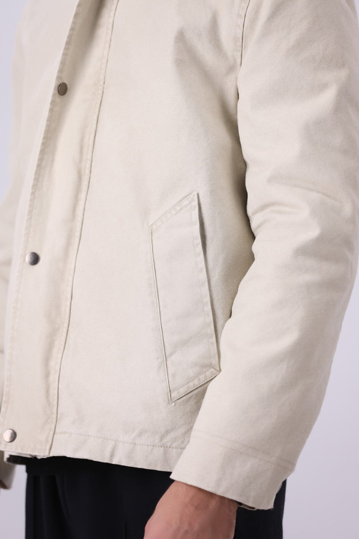 REGULAR FIT JACKET WITH SNAP BUTTON PLACKET AND HIDDEN ZIP FASTENING, REGULAR COLLAR AND LONG CUFFED SLEEVES.