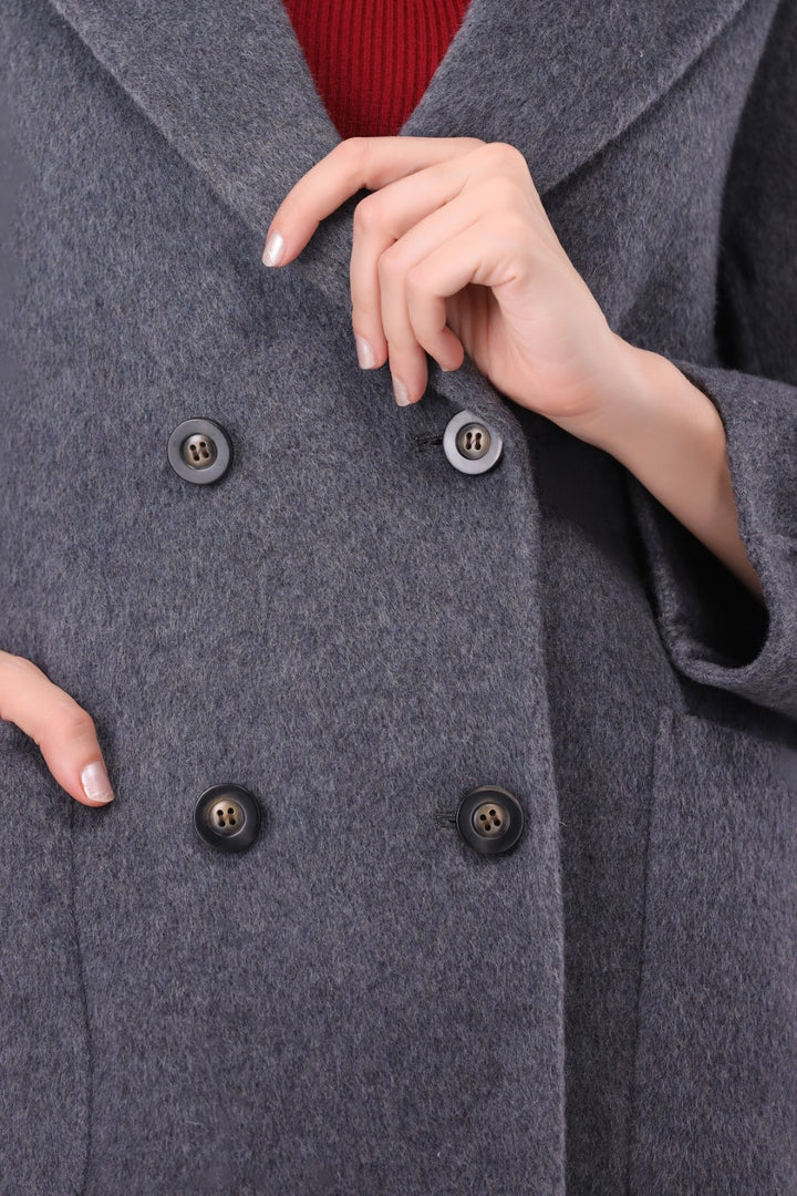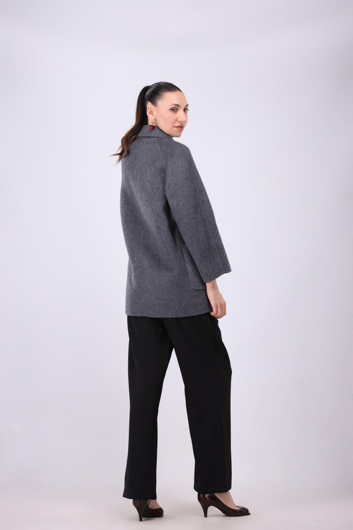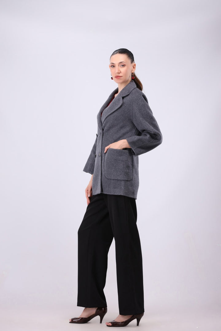 WOOL BLEND RELAXED FIT COAT WITH LAPEL COLLAR AND DOUBLE BREASTED FRONT CLOSURE AND LONG SLEEVES