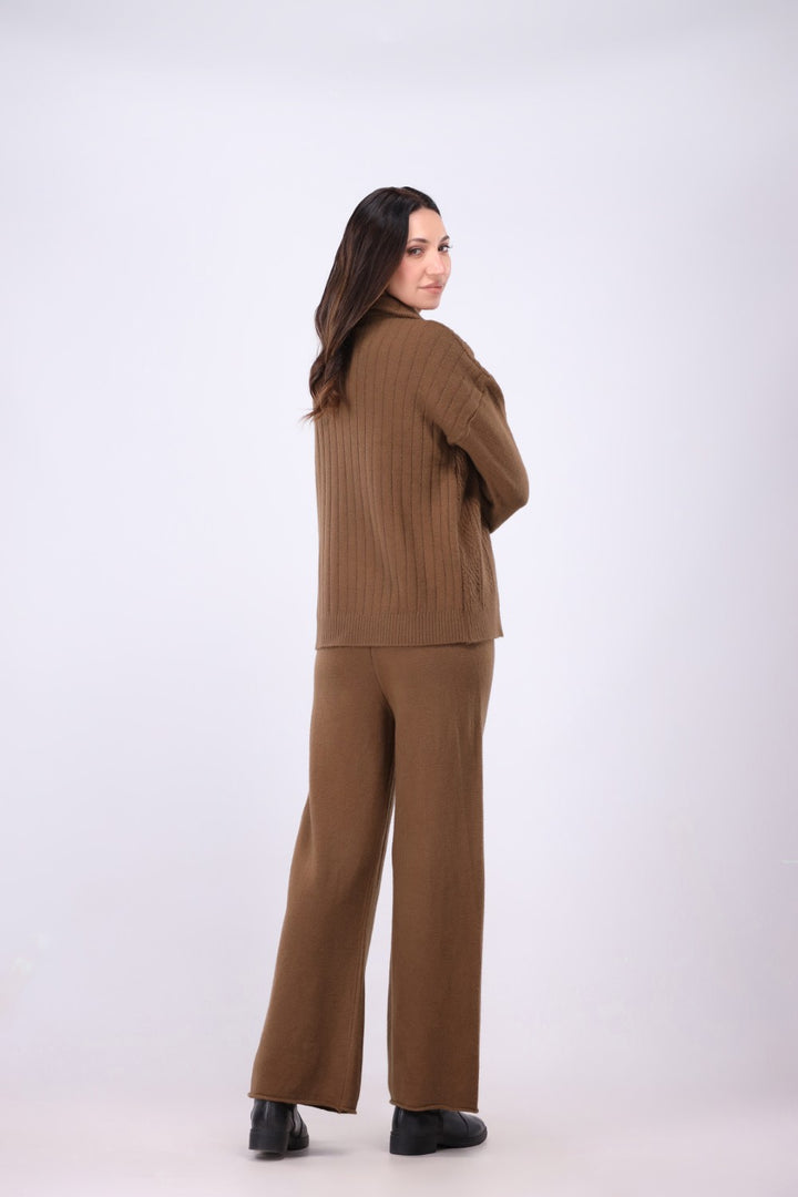 Relaxed fit cable knit sweater with turtle neck, quarter zip detail and long sleeves
