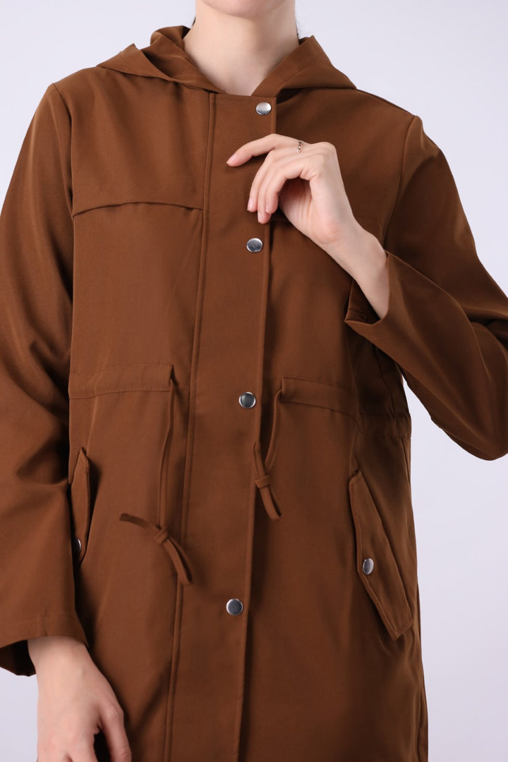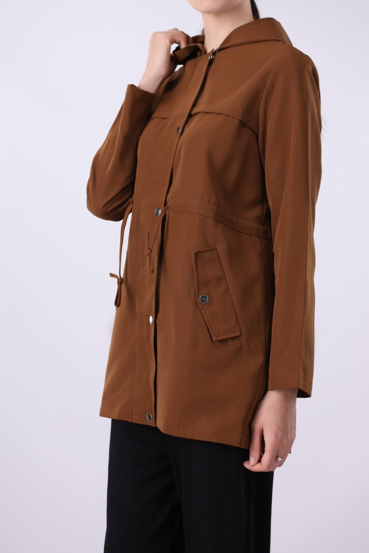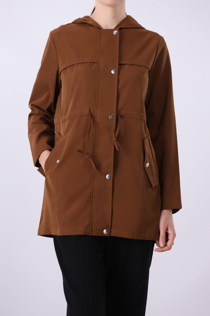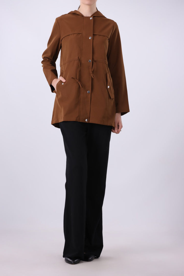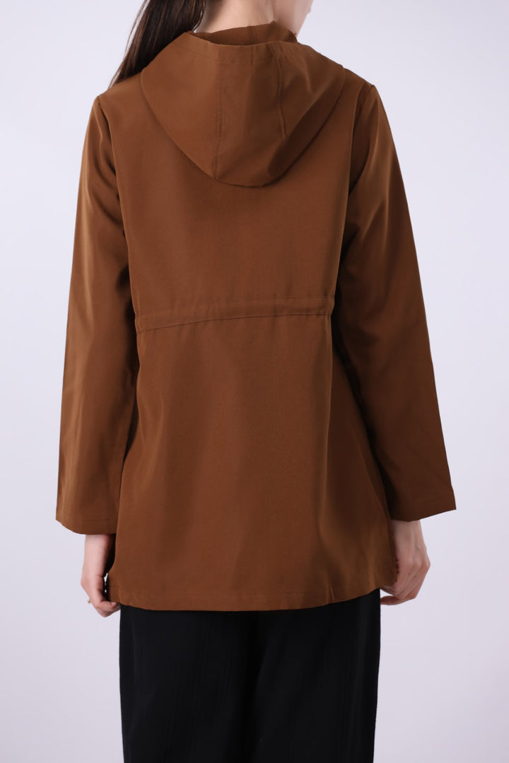 REGULAR FIT UTILITY JACKET WITH HOODED NECK, DRAWSTRING DETAIL AT WAIST, FRONT BUTTON PLACKET AND LONG SLEEVES