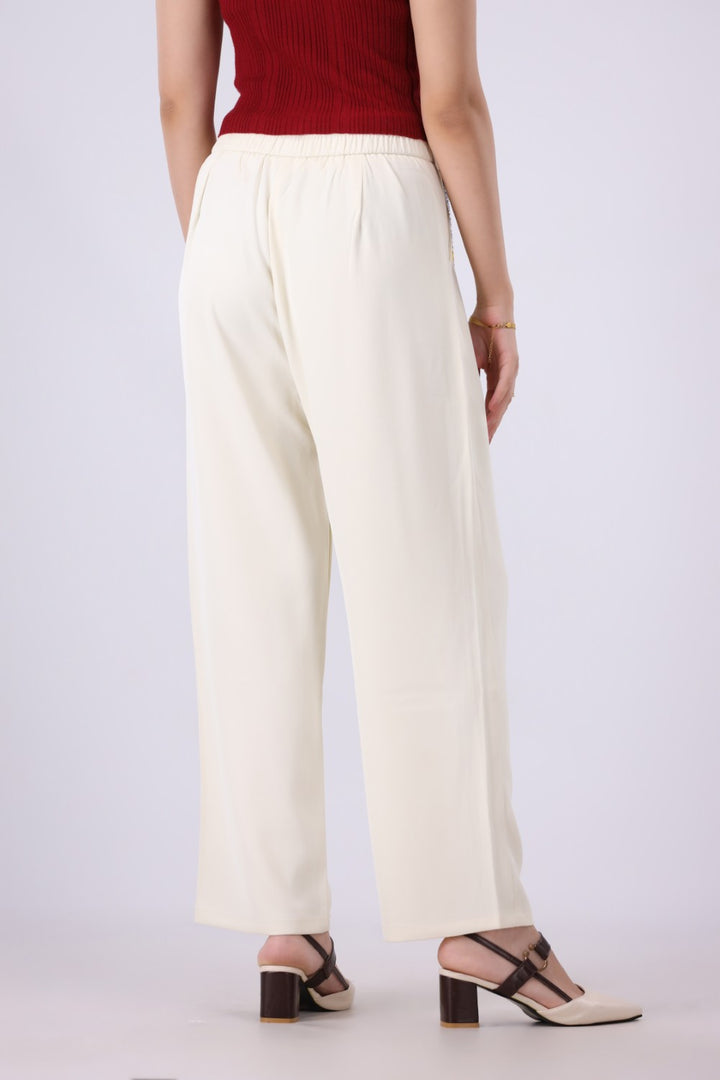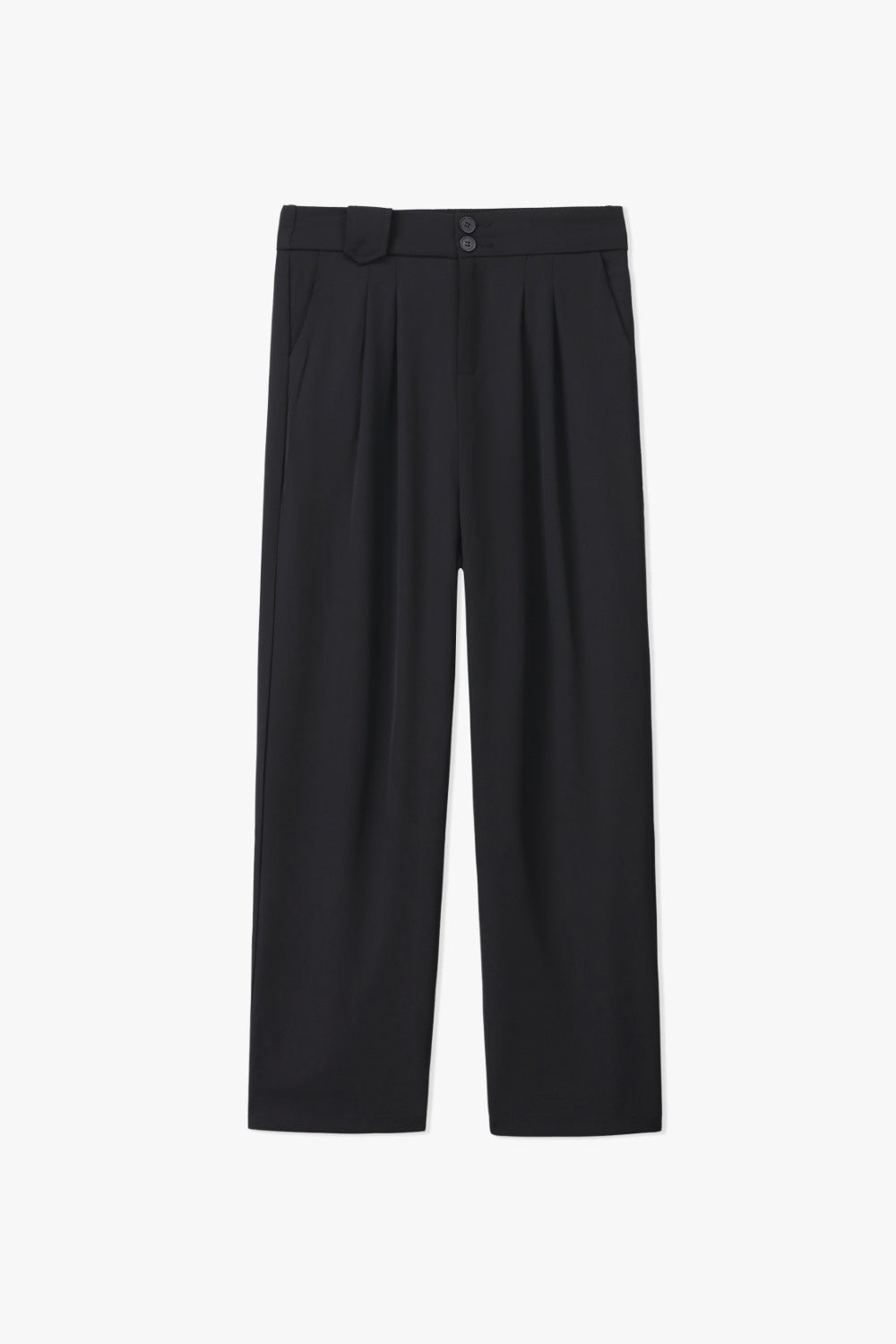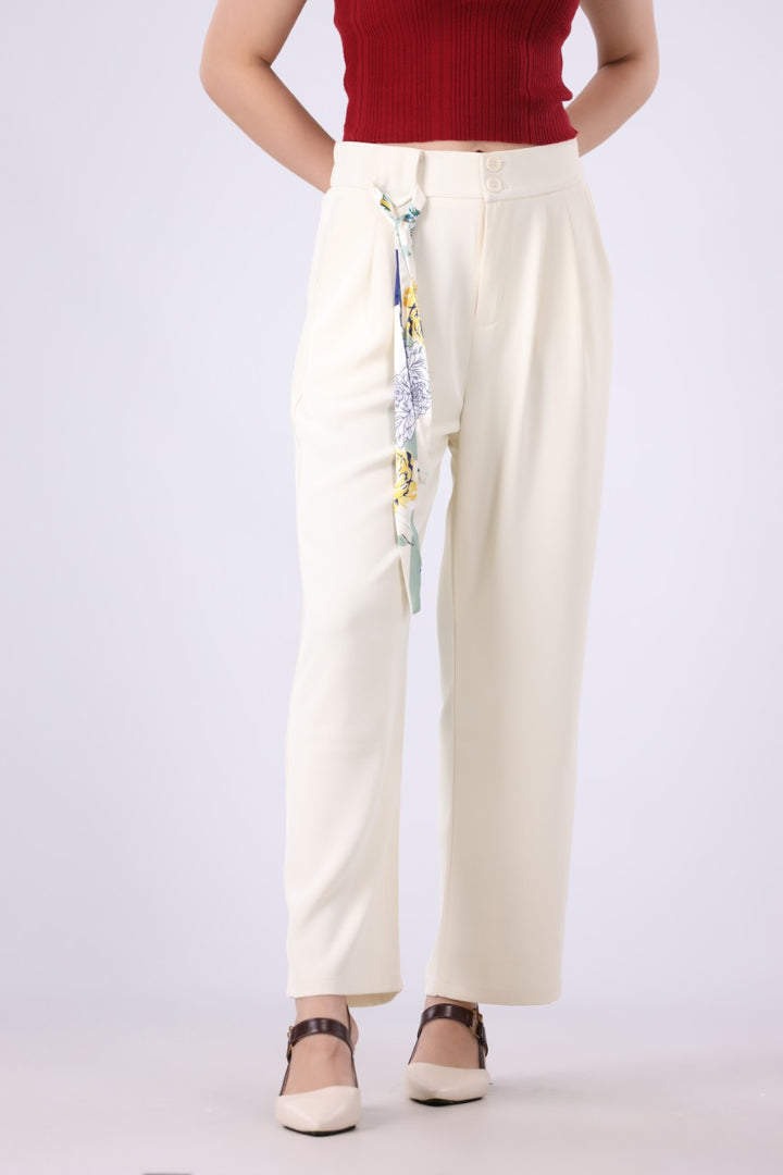 Woven wide-leg pants with belt loops, scarf belt detail, zipper fly with button closure