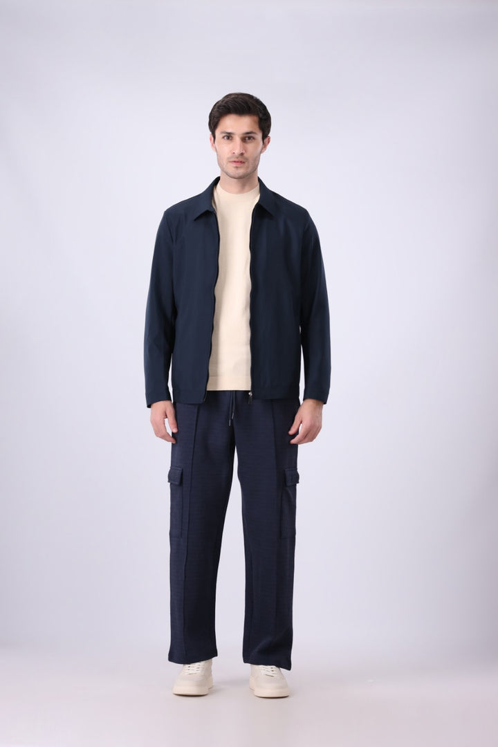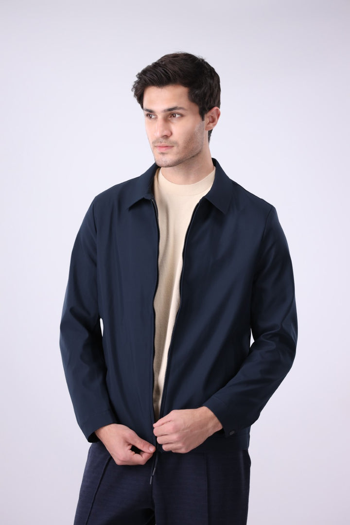REGULAR FIT HERRINGBONE JACKET WITH FRONT FULL ZIP CLOSURE AND LONG SLEEVES