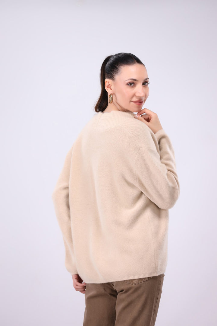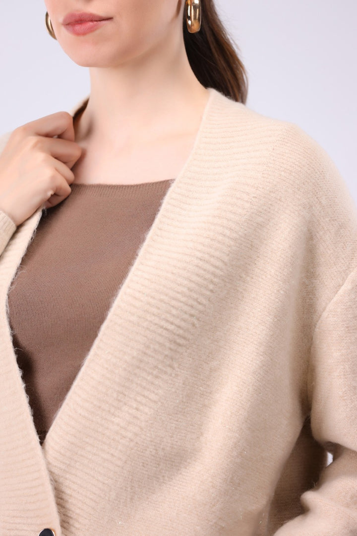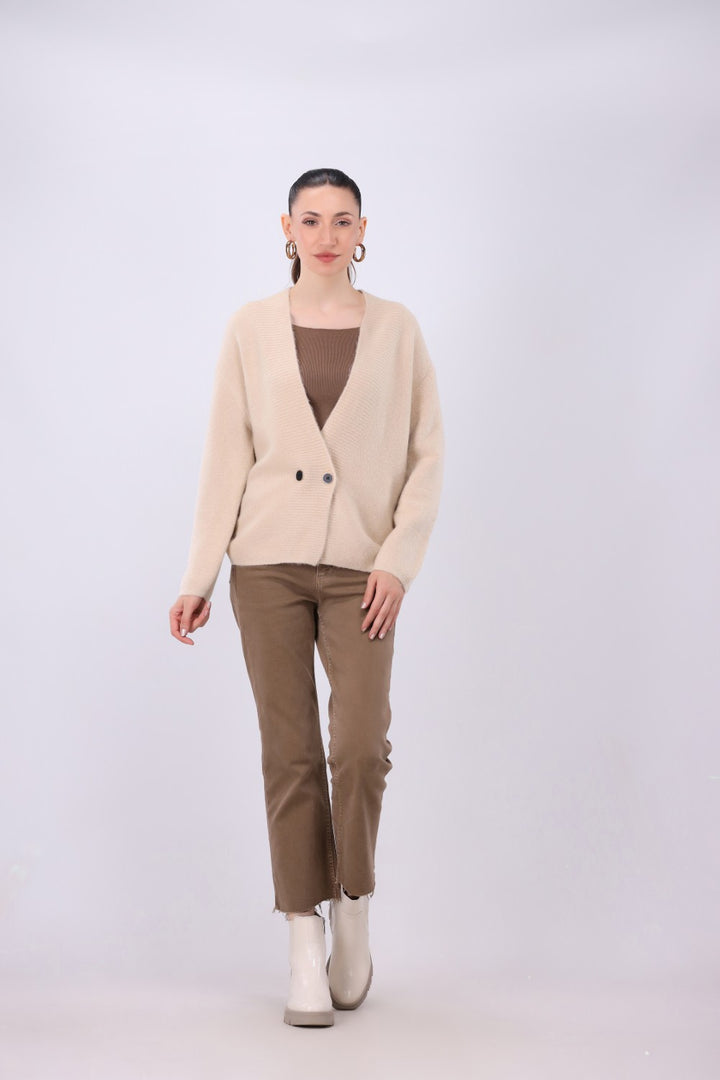 RELAXED FIT SWEATER CARDIGAN WITH SHAWL COLLAR, DOUBLE BREAST BUTTON AND LONG SLEEVES