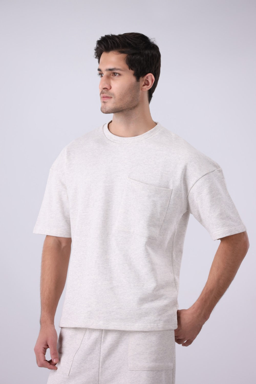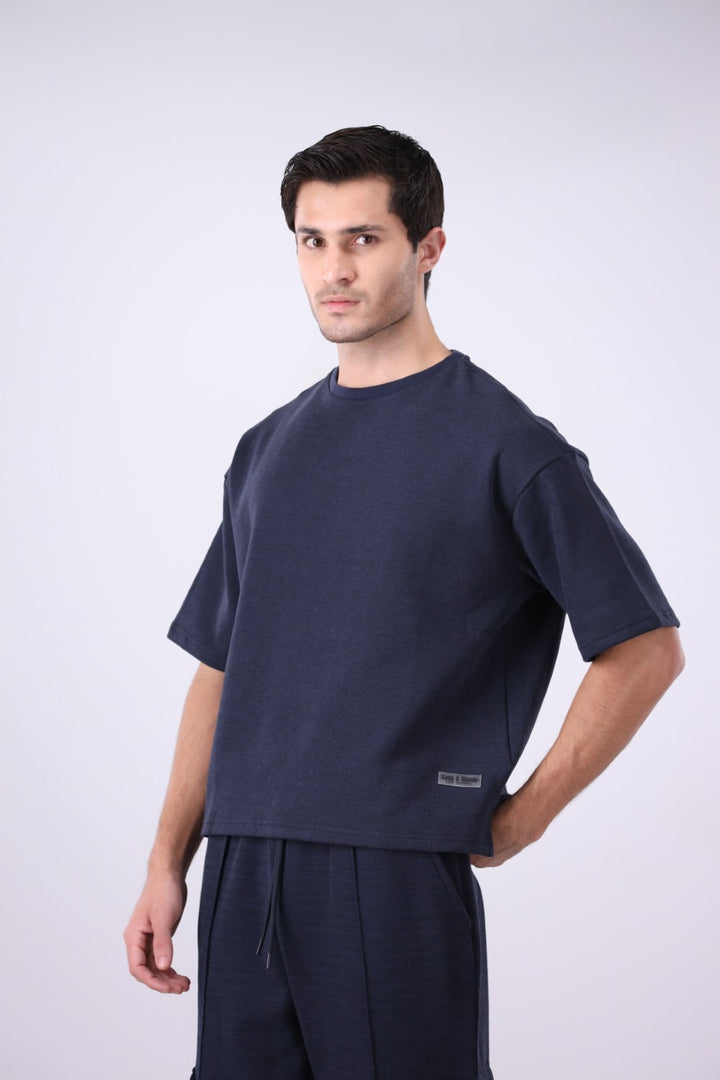 RELAXED FIT TECHNICAL SWEATSHIRT WITH DROP SHOULDER AND SHORT SLEEVES
