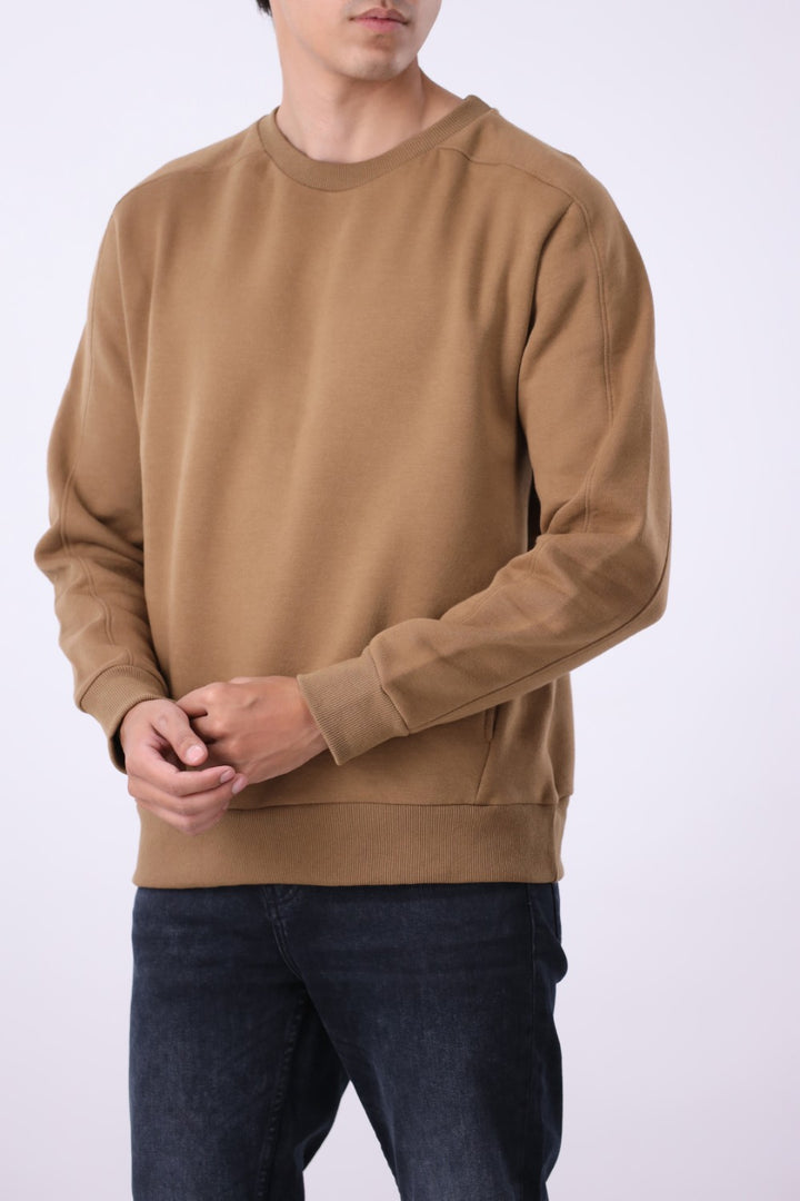 RELAXED FIT SWEATSHIRT WITH SIDE PANEL DETAIL WITH POCKET, CREW NECKLINE, RIBBING AT HEM, SLEEVES,NECK AND LONG SLEEVES