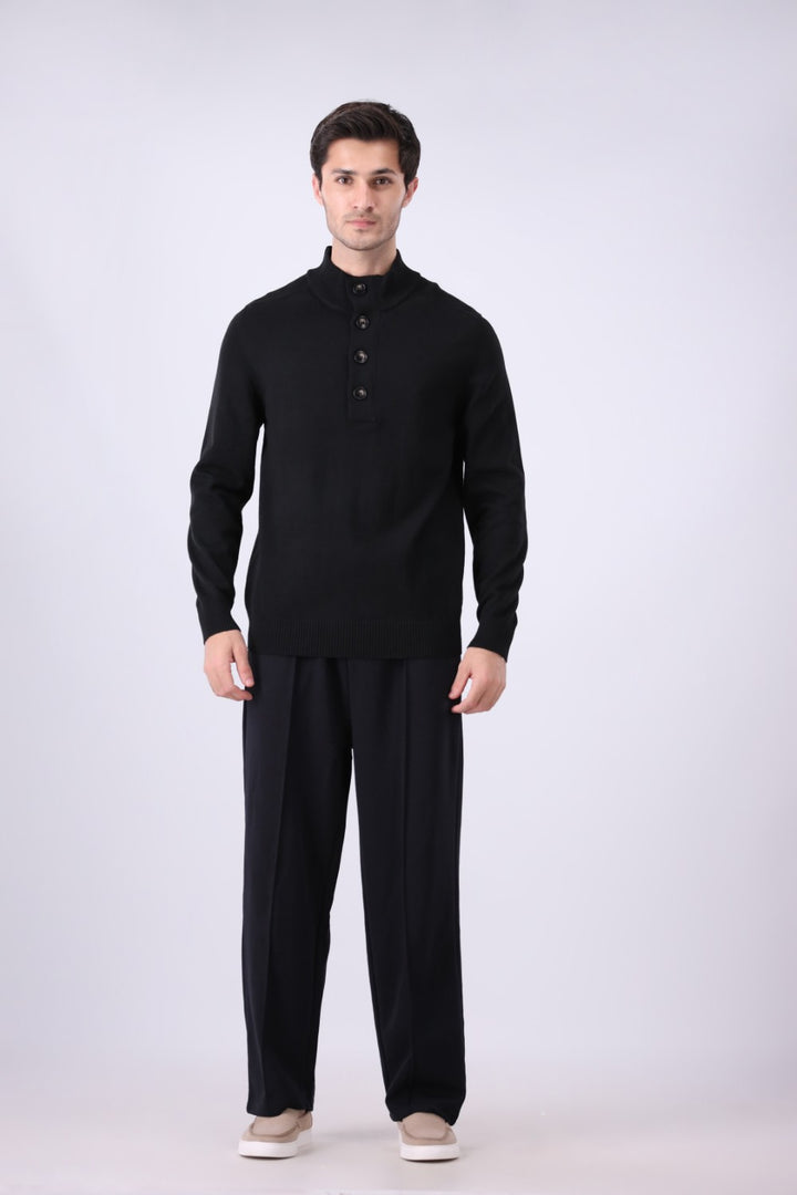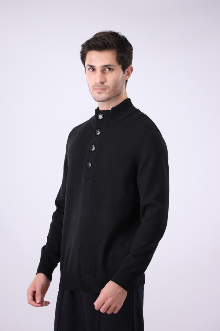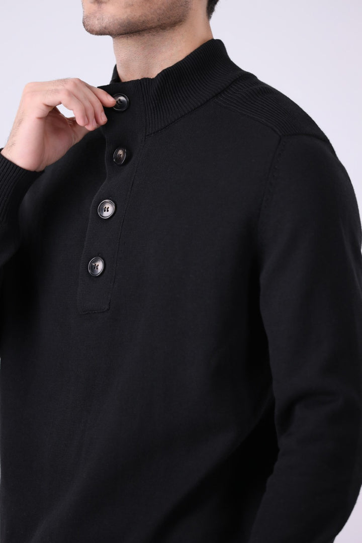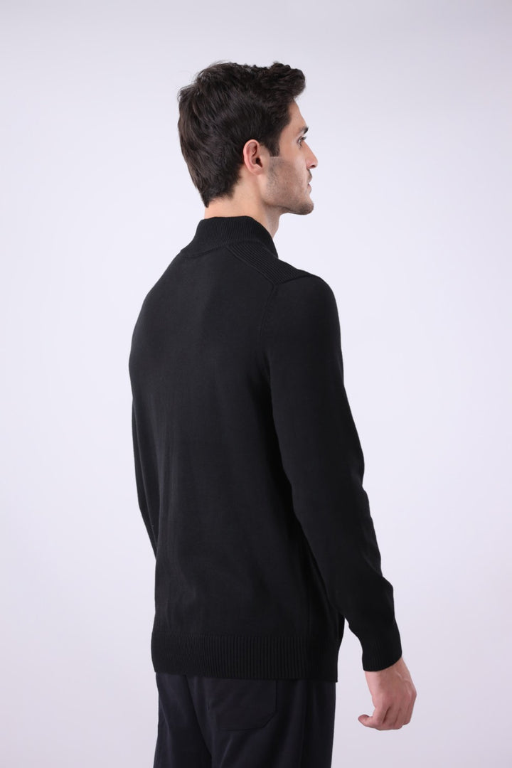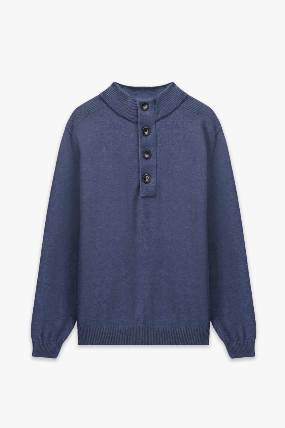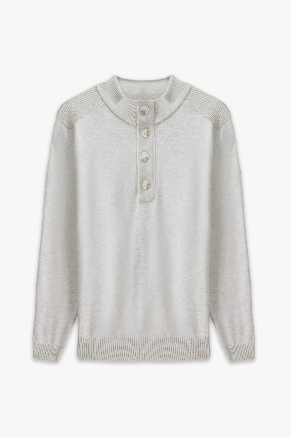 REGULAR FIT KNITTED POLO WITH A HIGH COLLAR, RIBBED TRIMS AND LONG SLEEVES