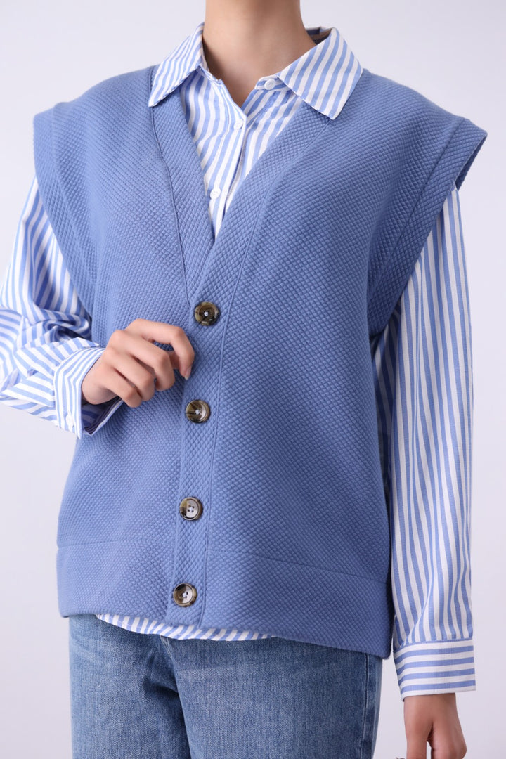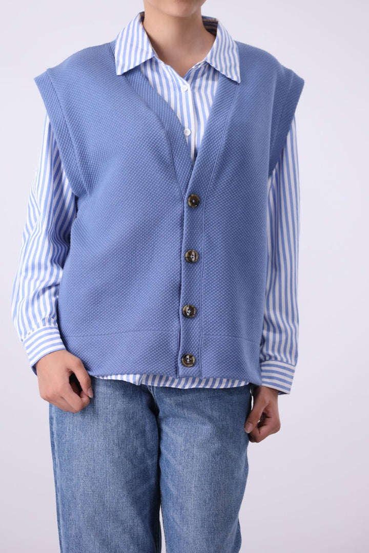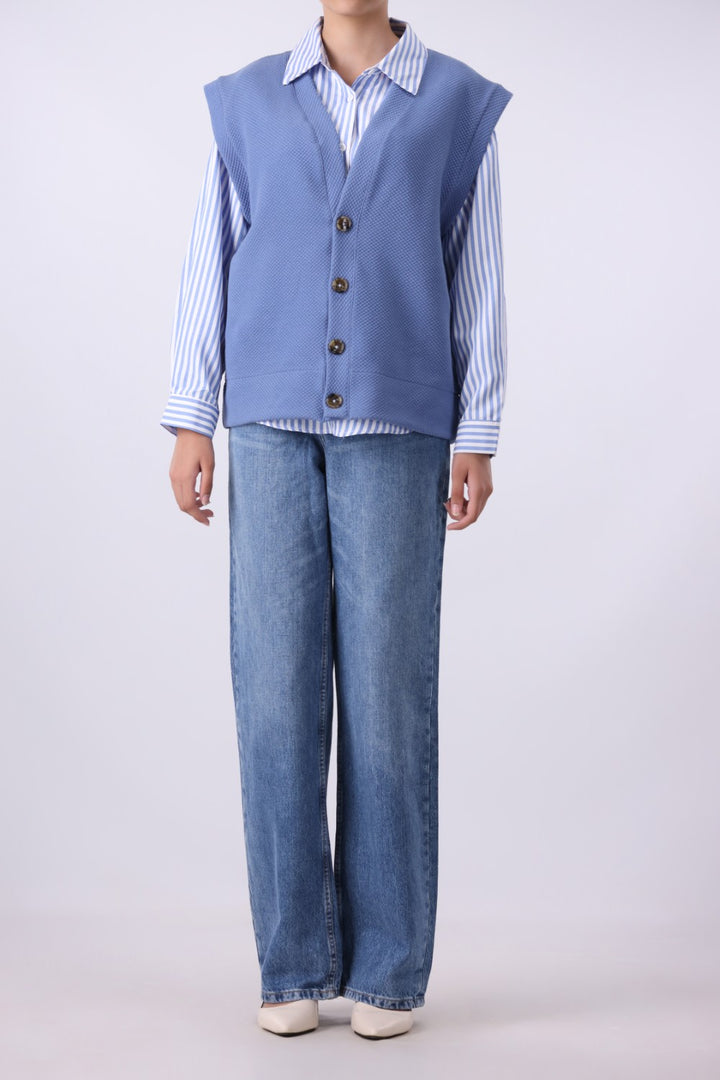 REGULAR FIT KNITTED VEST WITH FRONT BUTTON PLACKET, V-NECKLINE AND RIBBED TRIMS