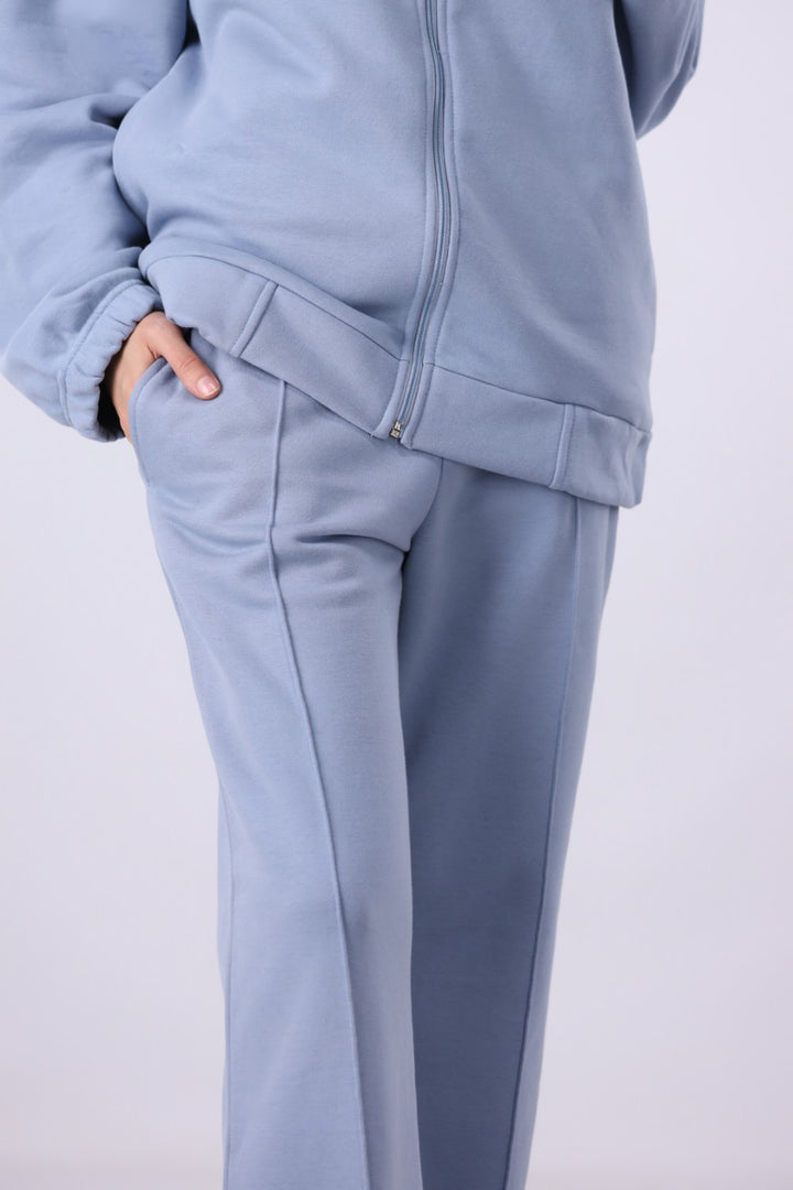 KNITTED WIDE LEG TROUSER WITH FRONT WELT POCKET DETAIL, FRONT TOP STITCH AND ELASTICATED WAISTBAND