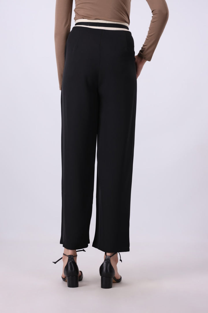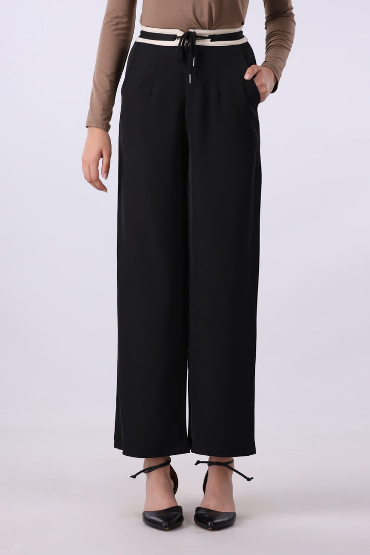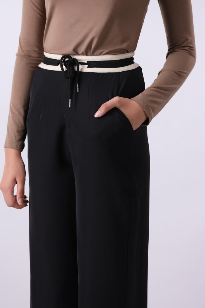 KNITTED WIDE LEG TROUSER WITH A CONTRAST WAISTBAND DETAIL AND DRAWSTRING