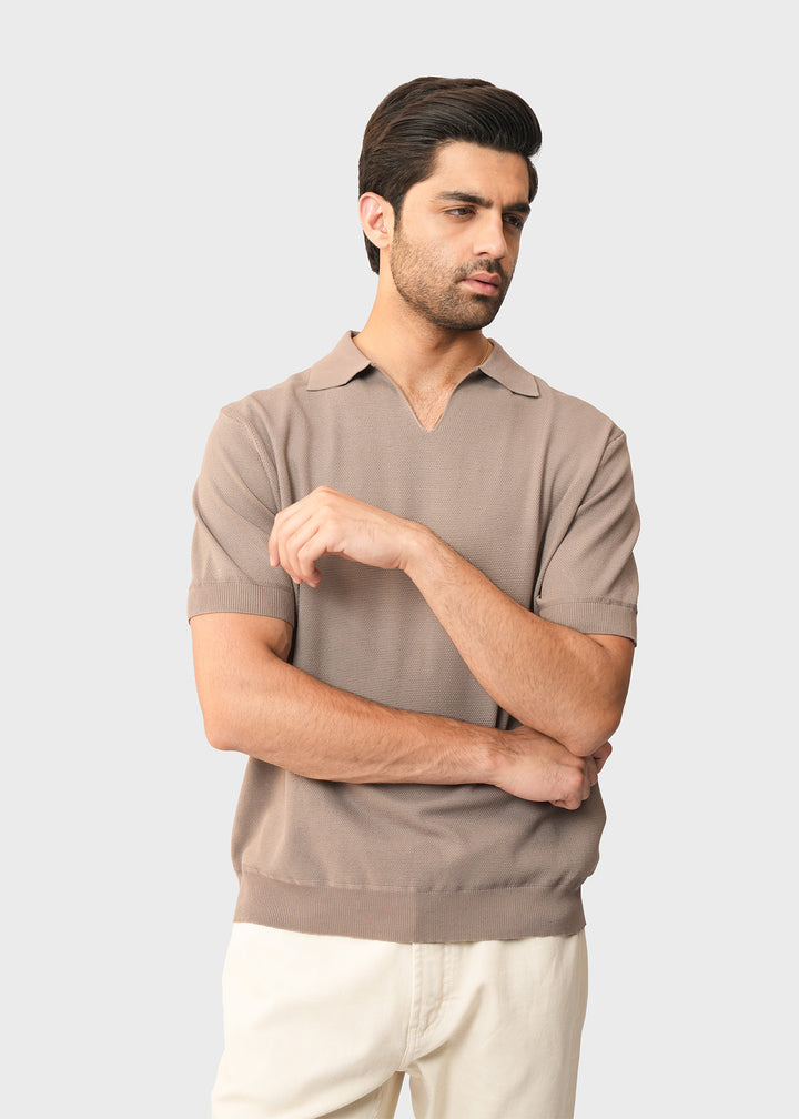 Regular-fit polo shirt in a fine-knit cotton blend with a comfortable, classic silhouette. Collar, short placket, and short sleeves. Fine ribbing at sleeve and hem.