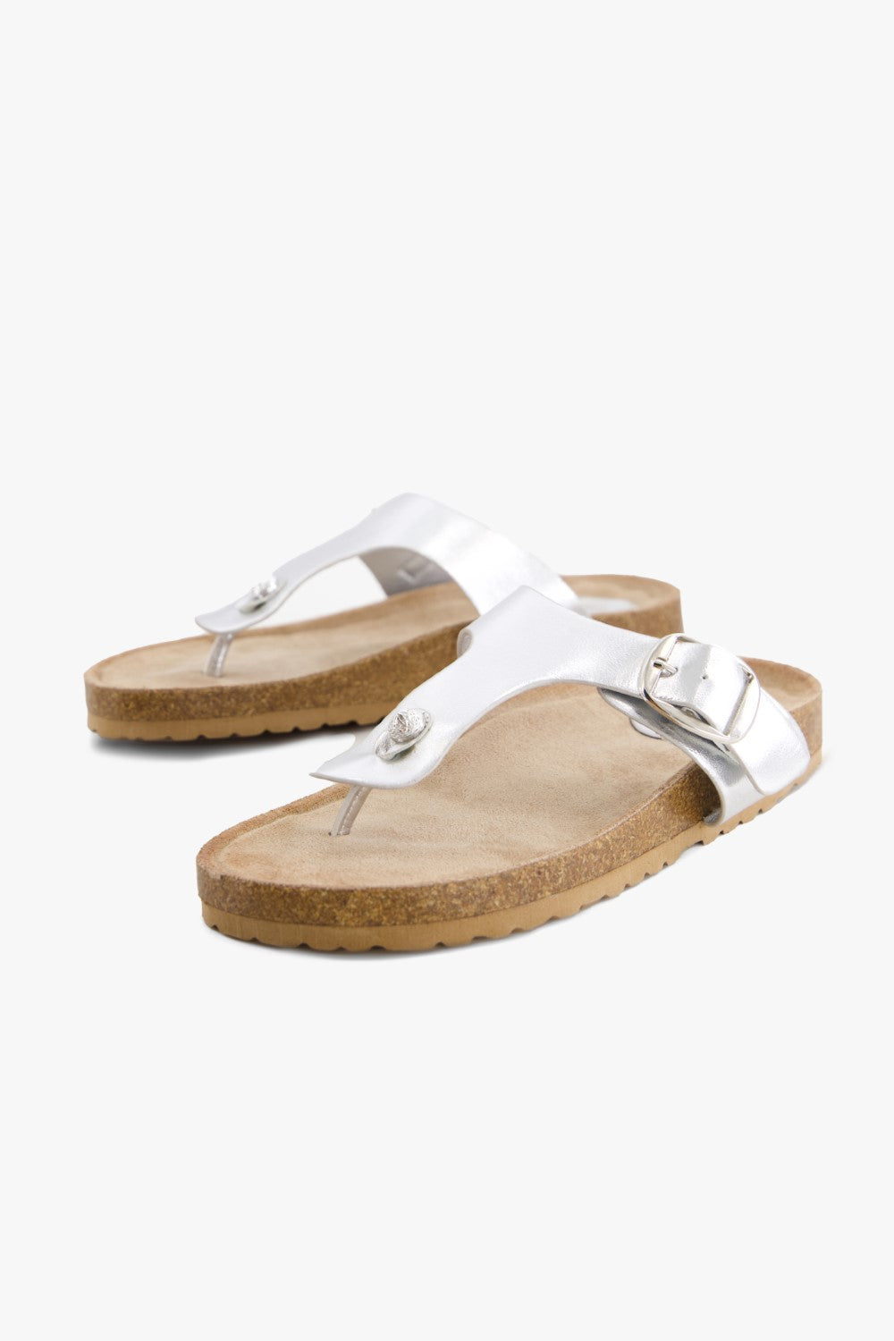 Designed with sculptural simplicity, these strappy slide sandals feature a squared toe and slender front straps that frame the foot. A secure back strap with a metallic buckle at the ankle adds structure to the open, effortless silhouet
