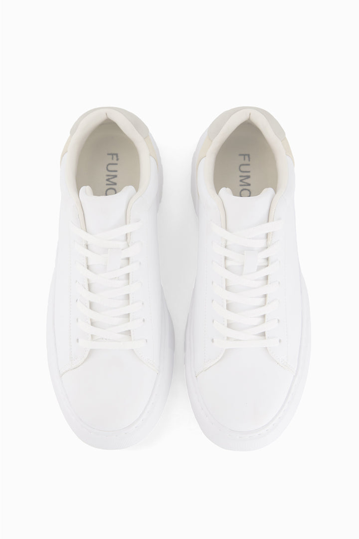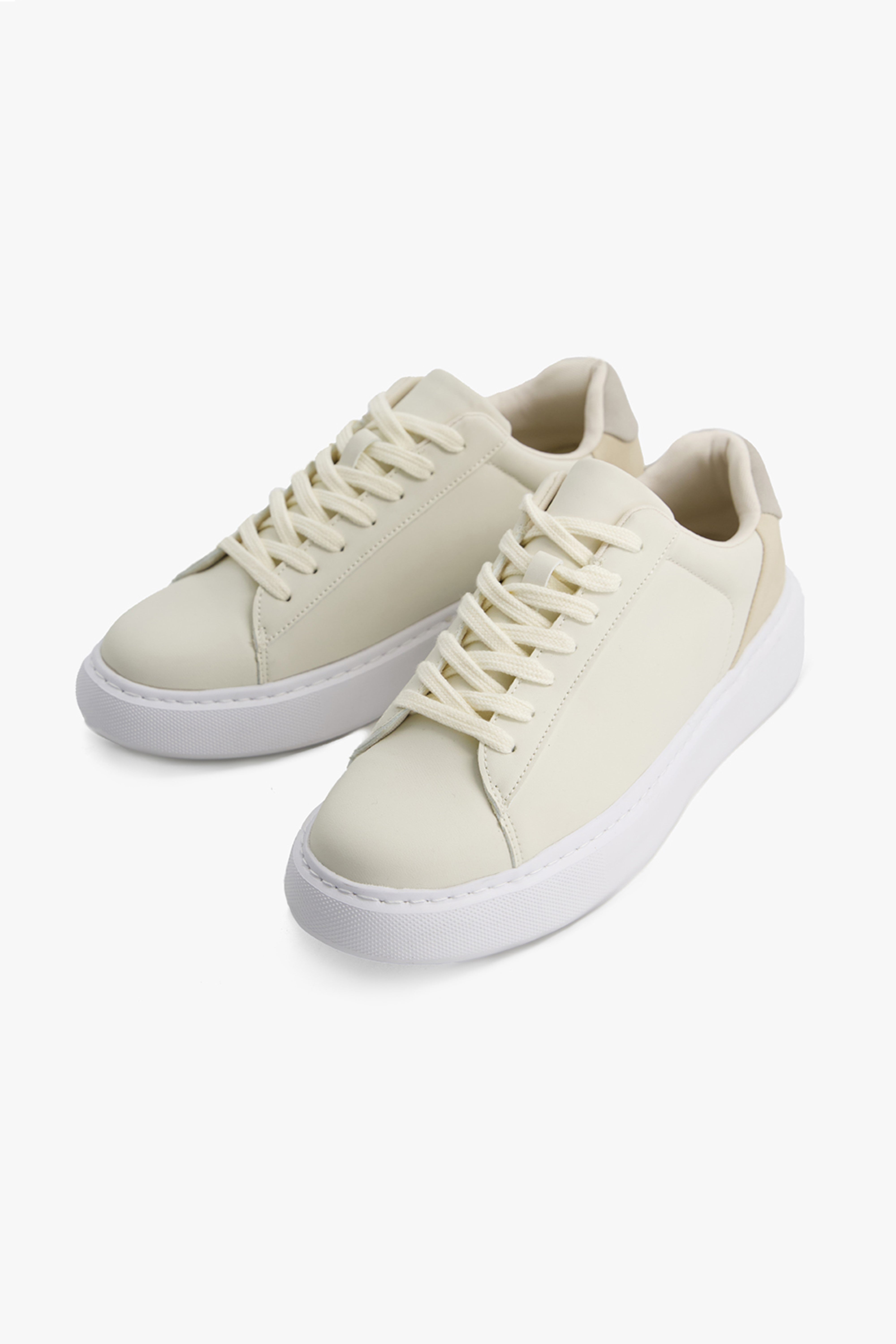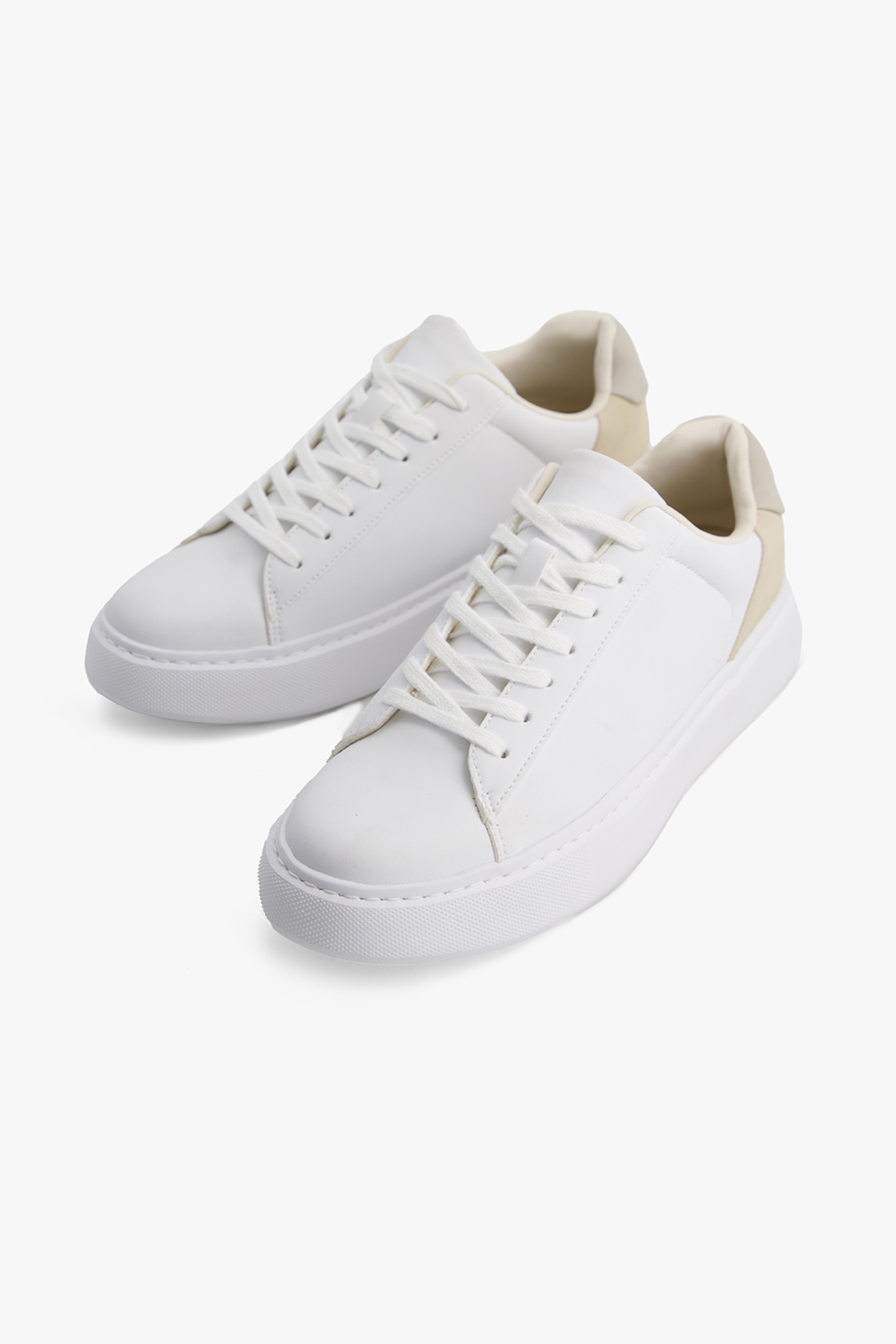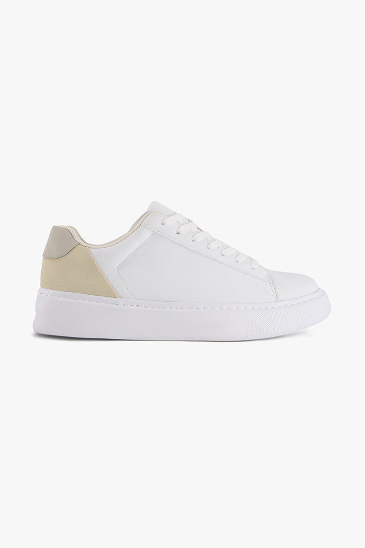 A clean, modern sneaker elevated with subtle contrast; crafted with a smooth upper and finished with a bold pop of colour at the heel. Set on a thick, cushioned sole for comfort and everyday durability, these shoes blend minimal design