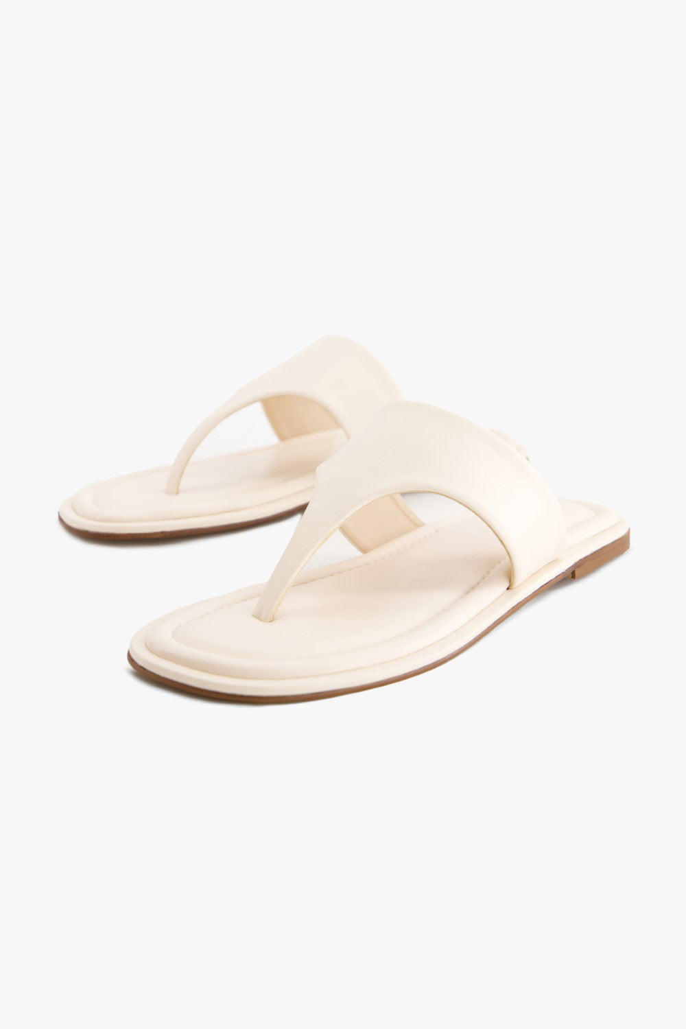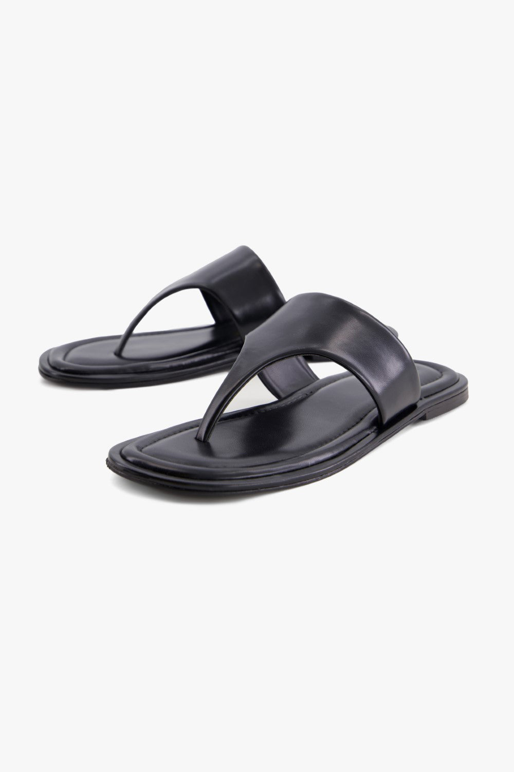 A minimal sandal with a modern sensibility; crafted in smooth leather and designed with a wide front strap and structured toe loop. Sleek and grounded, this pair is made for sunlit days and effortless styling.