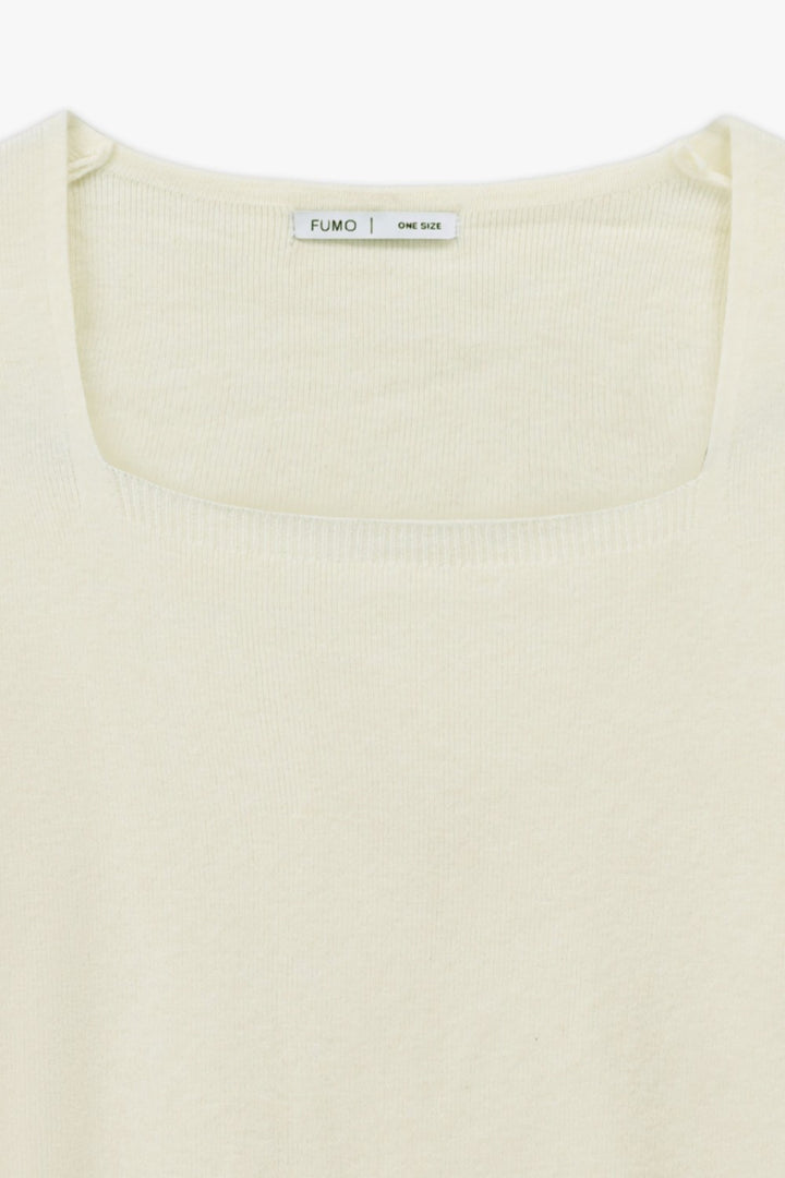 SLIM FIT KNITTED CROP TOP WITH SQUARE NECKLINE, SHORT SLEEVES AND RIBBED HEM