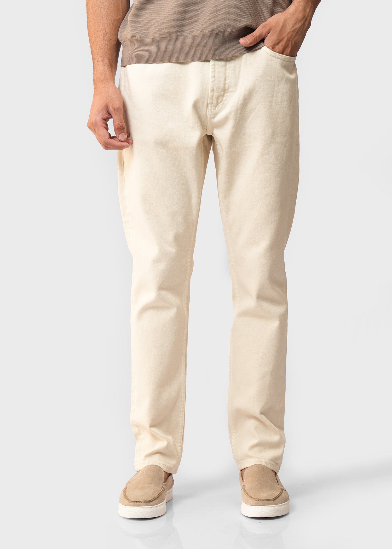 The slim-fit cotton colored denim is a blend of timeless design and premium material. It is enriched with 5 pockets in stretch cotton denim. Skinny fit through hip, thigh, and leg for a sleek laid back look. Adjustable, elasticized waistband