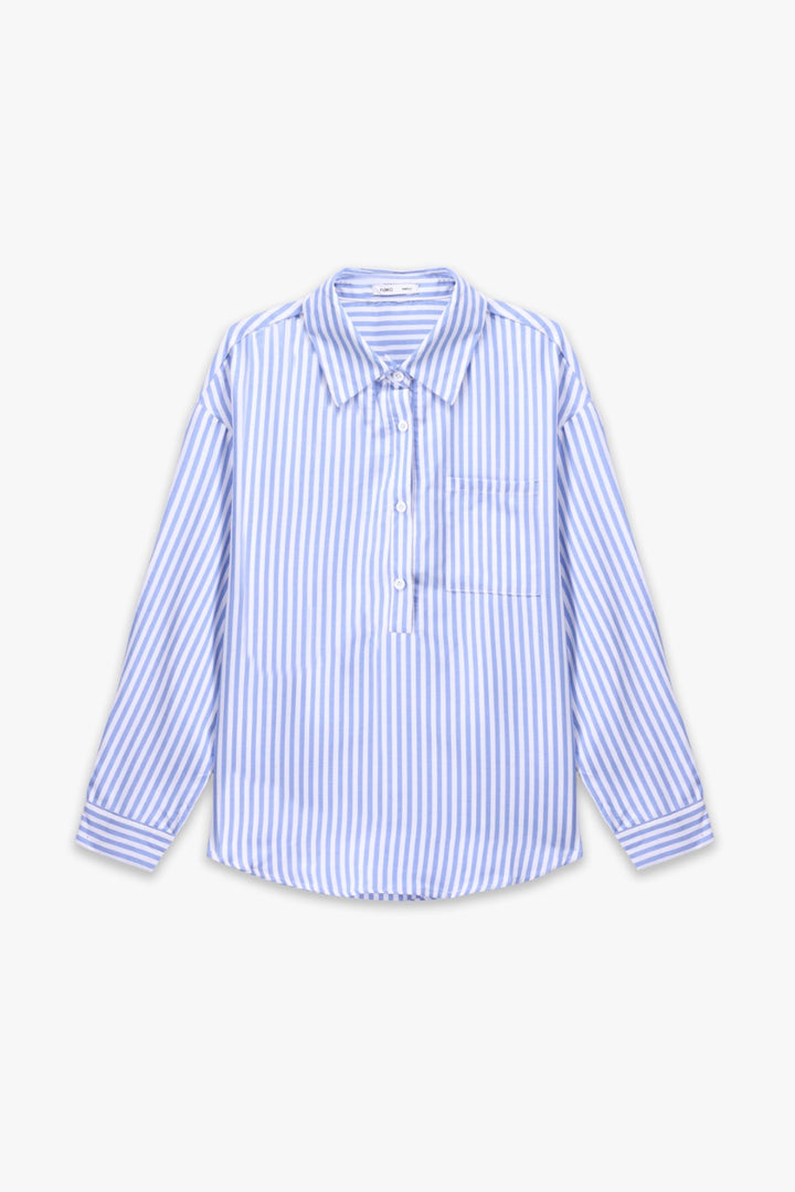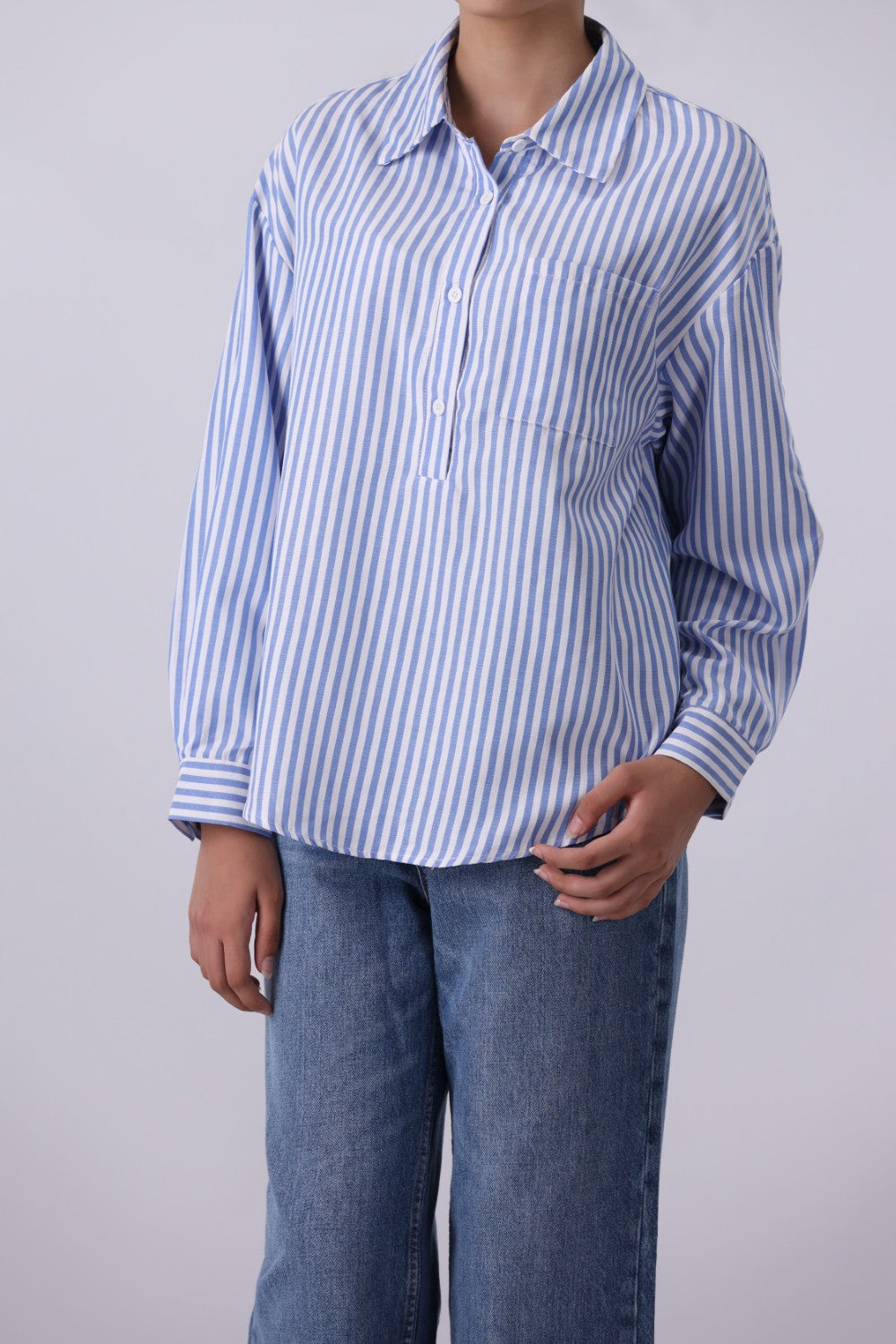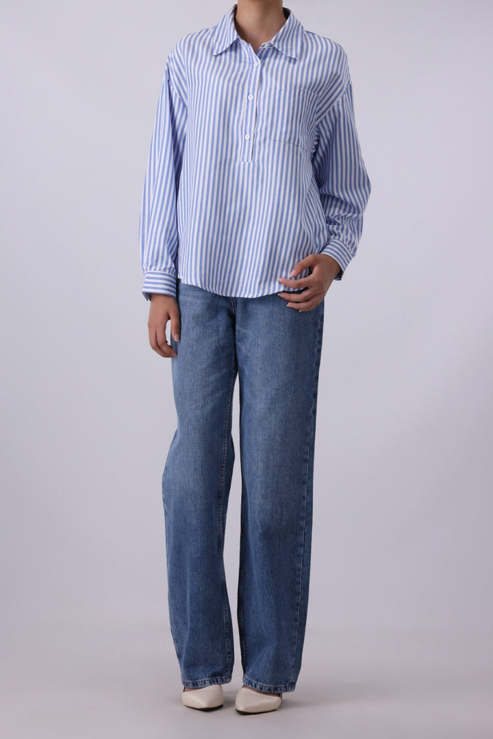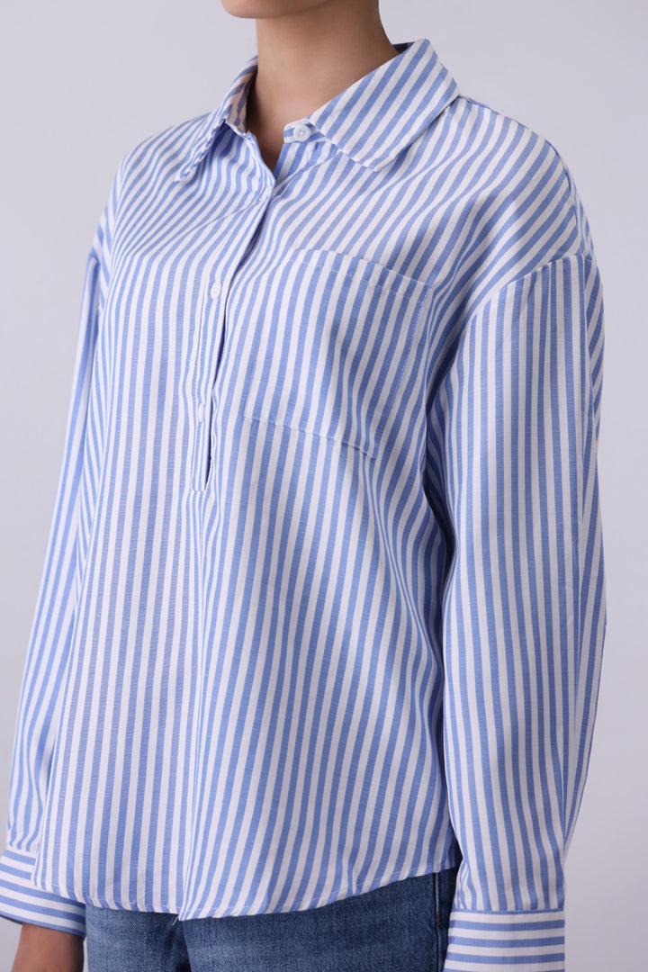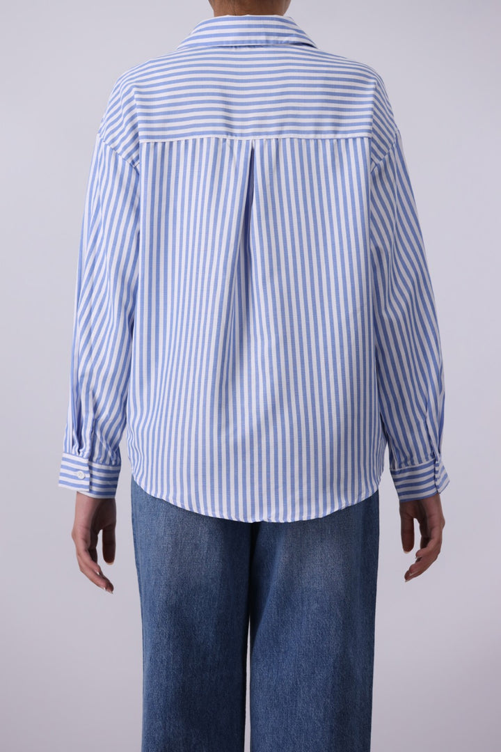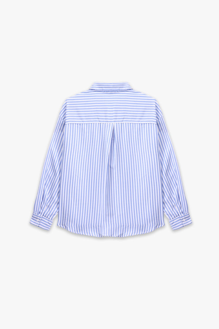 Striped Relaxed Fit Button-up Shirt With Long Cuffed Sleeves And Drop Shoulder