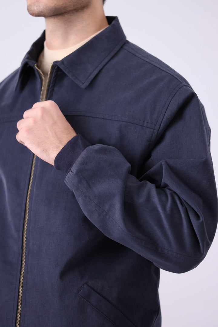 RELAXED FIT JACKET WITH SPEAD COLLAR, FRONT ZIP FASTENING, FRONT PATCH POCKETS WITH SNAP BUTTON FLAPS AND LONG SLEEVES