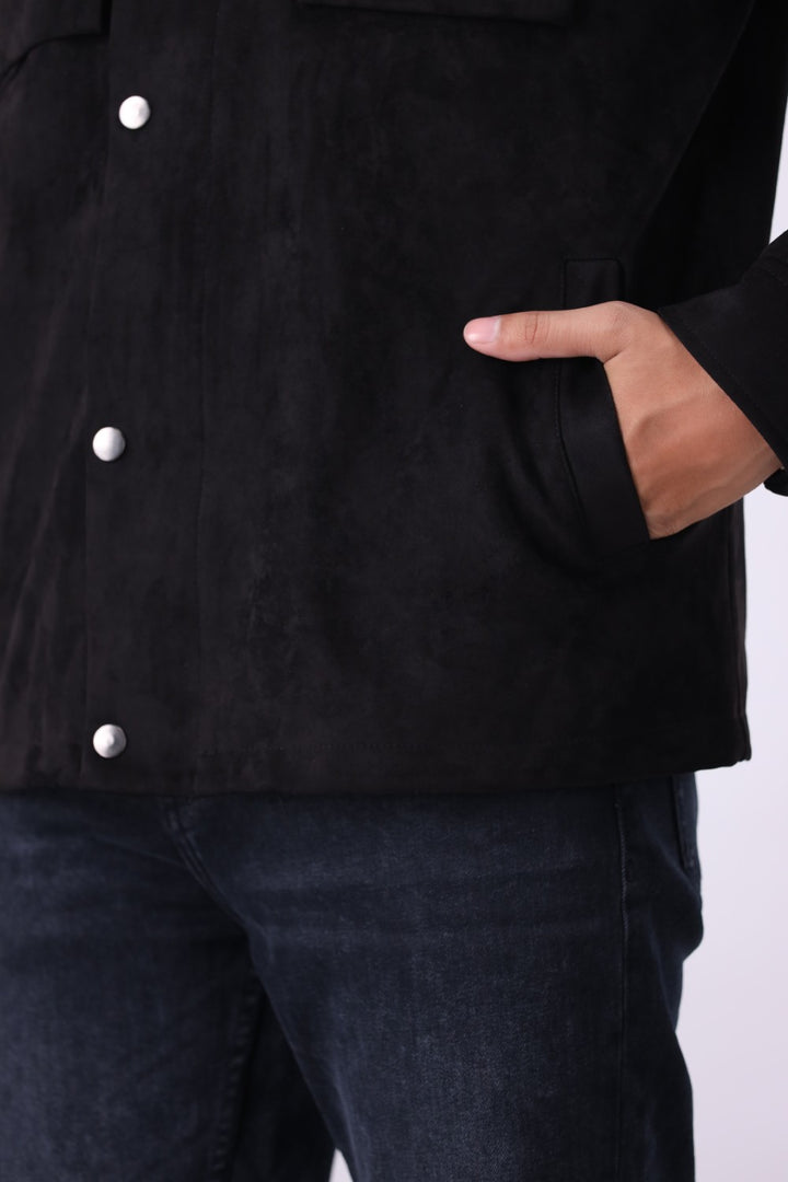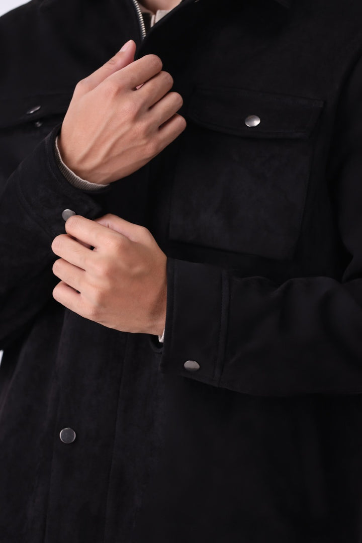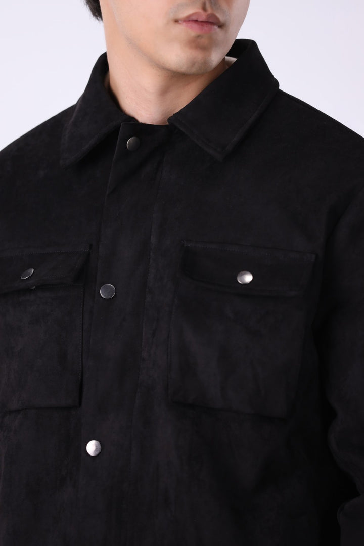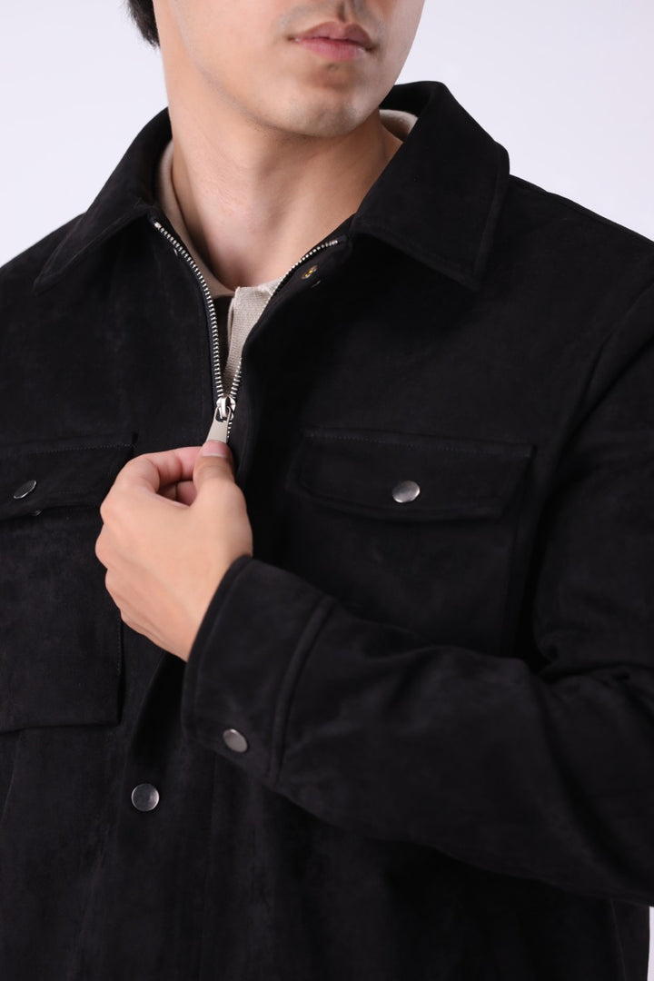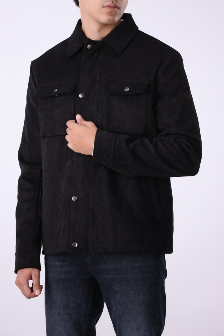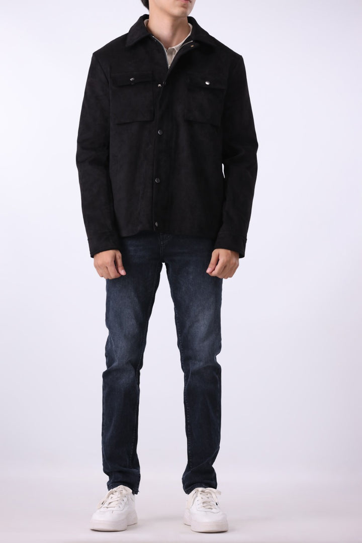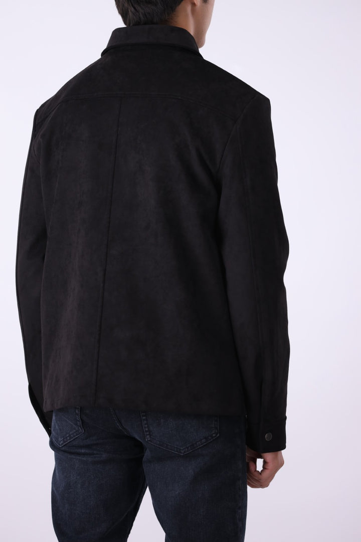 REGULAR FIT SUEDE JACKET WITH FULL-ZIP FRONT, BUTTON CLOSURE FLAP, REGULAR COLLAR, FRONT FLAP POCKETS AND LONG SLEEVES