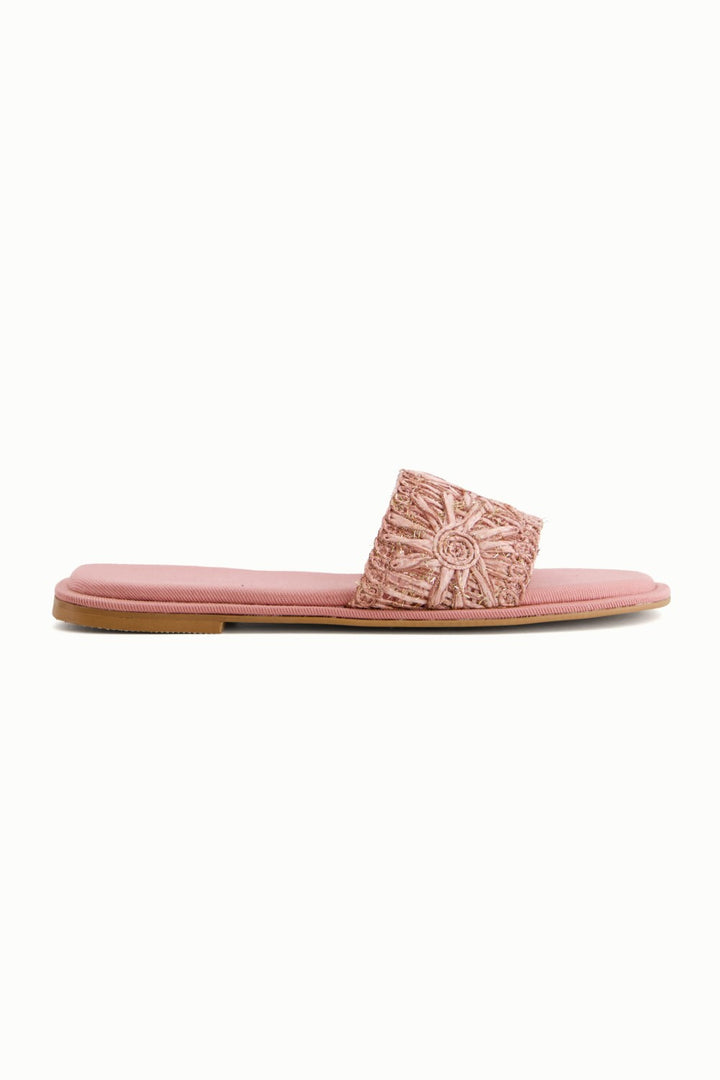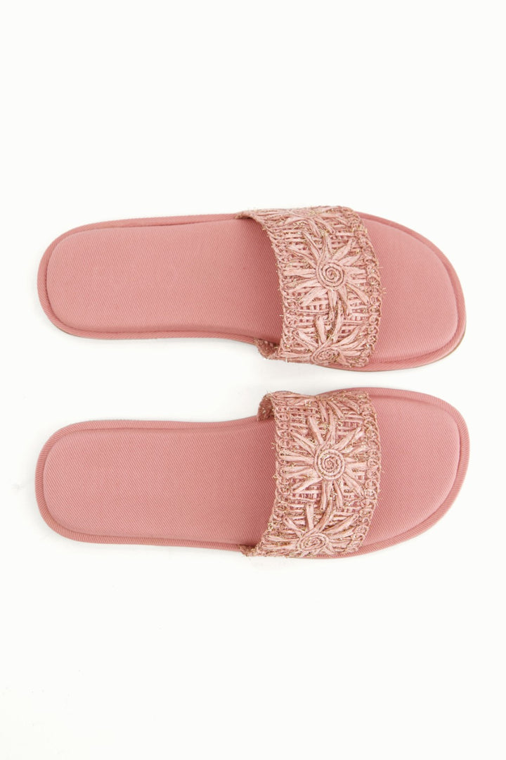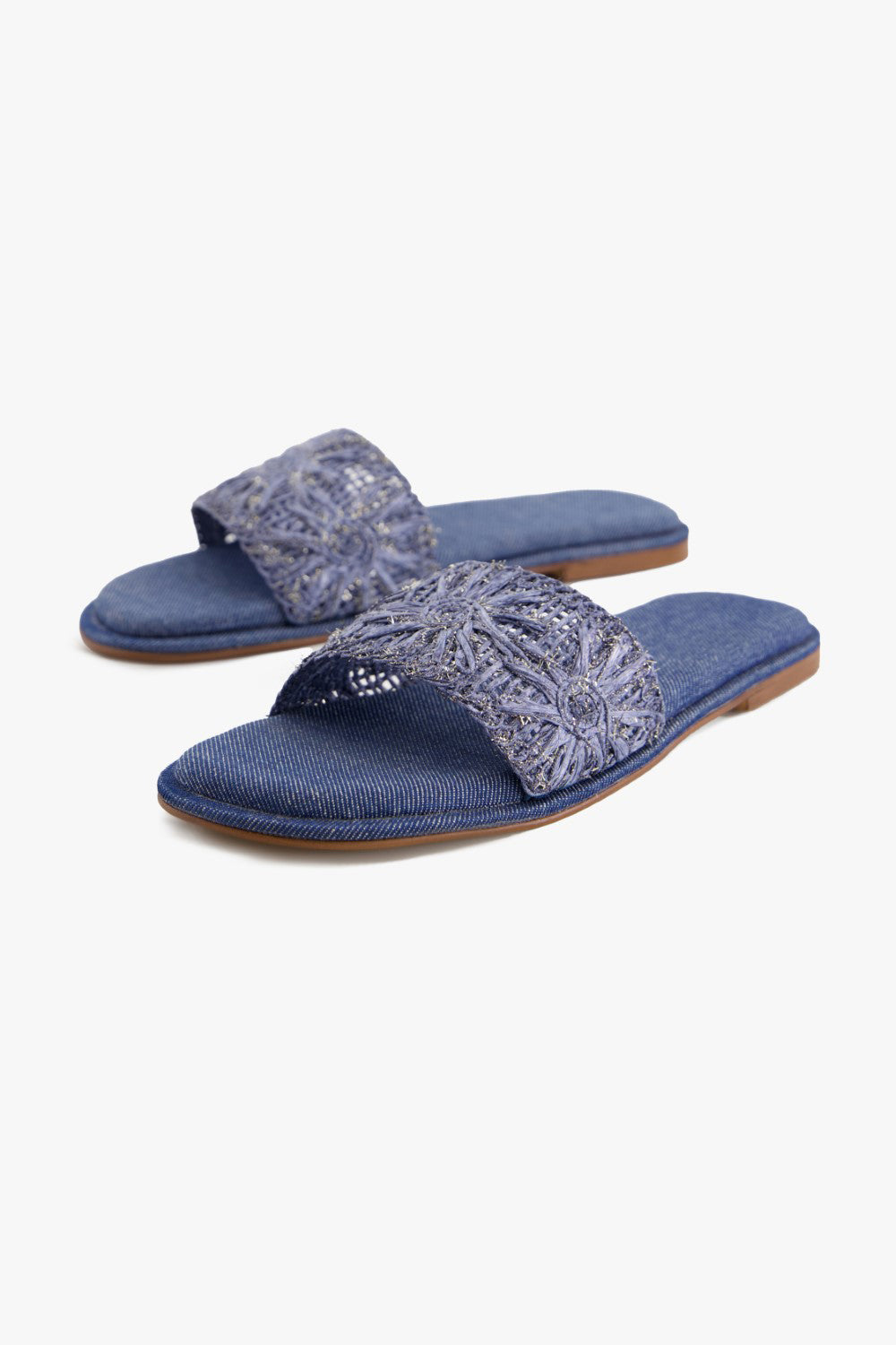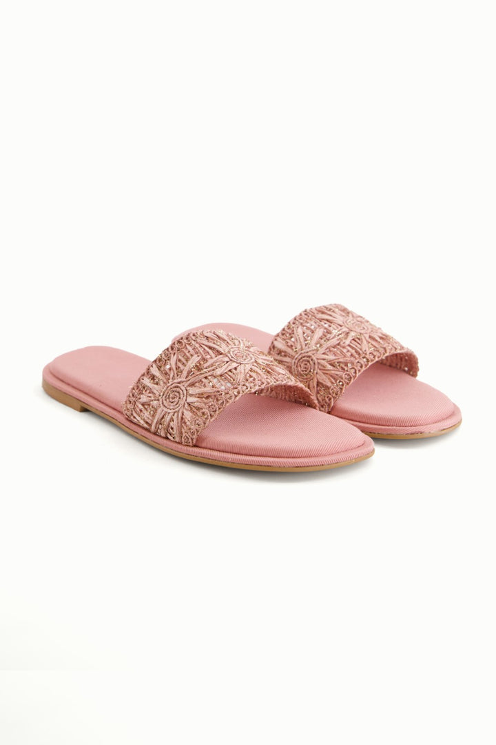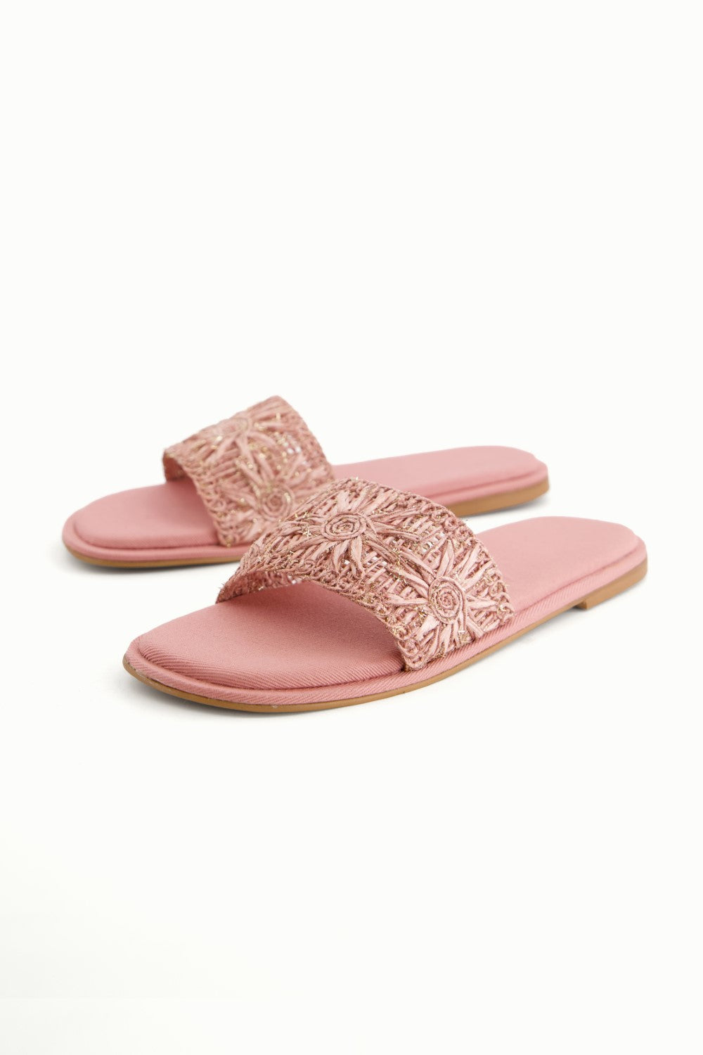 Opulent yet effortless, these slip-on flats feature a rounded toe and a beautifully embroidered strap adorned with intricate beadwork. The textured fabric upper and lightly cushioned sole offer both visual interest and all-day comfort,