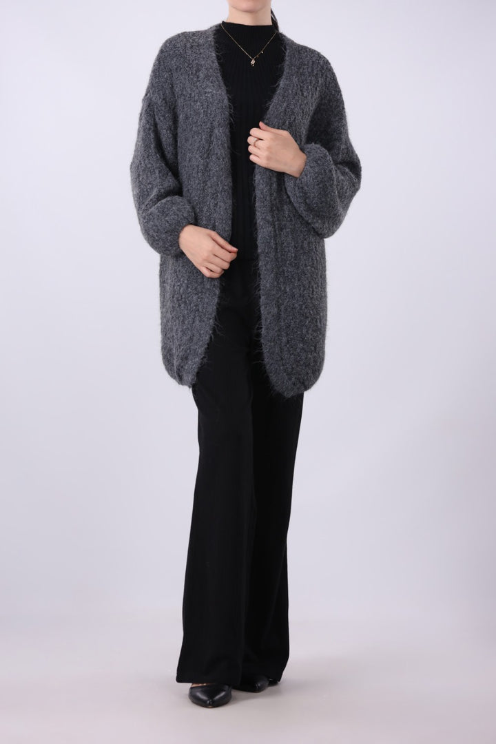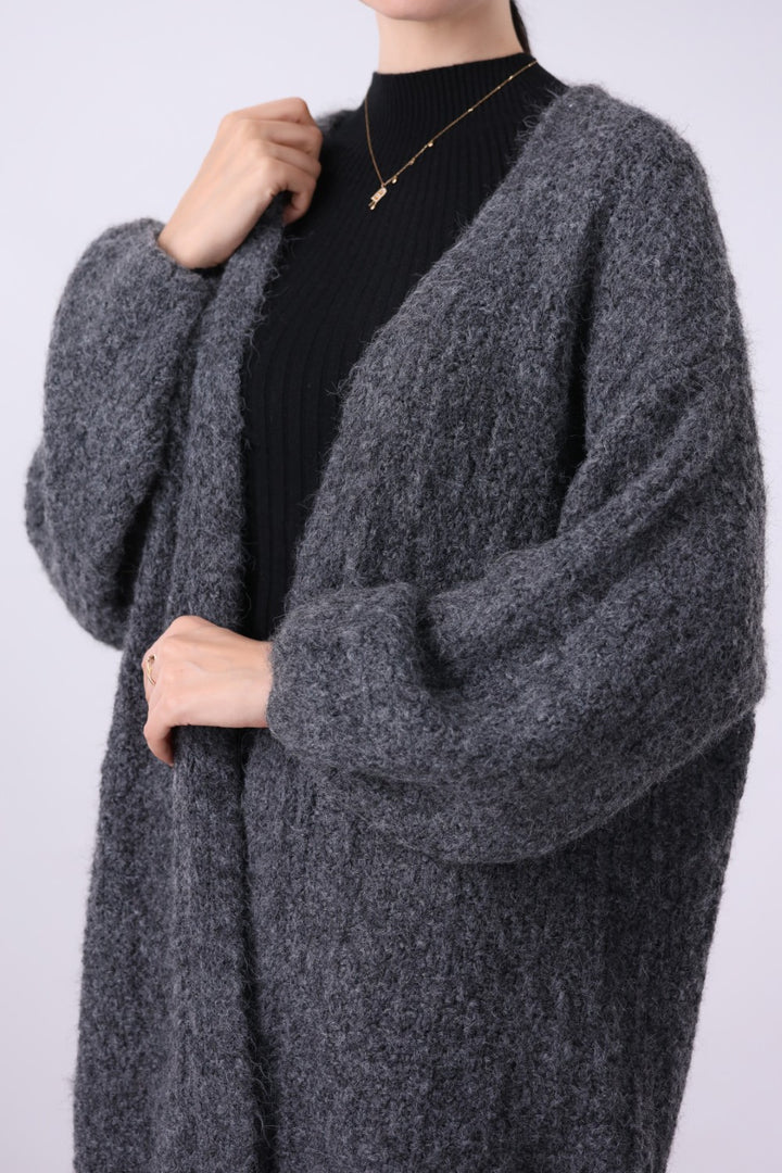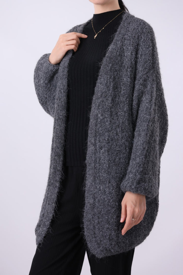 LOOSE FIT OPEN FRONT CARDIGAN WITH NON-FUNCTIONAL INNER DETAIL AND LONG SLEEVES
