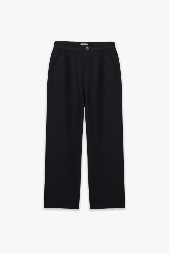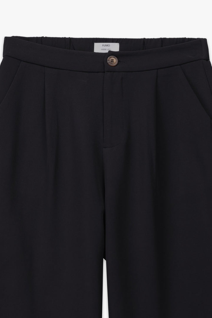 WOVEN WIDE-LEG TROUSER WITH A ZIP FLY WITH FRONT BUTTON CLOSURE, SIDE POCKETS AND FRONT PLEATS
