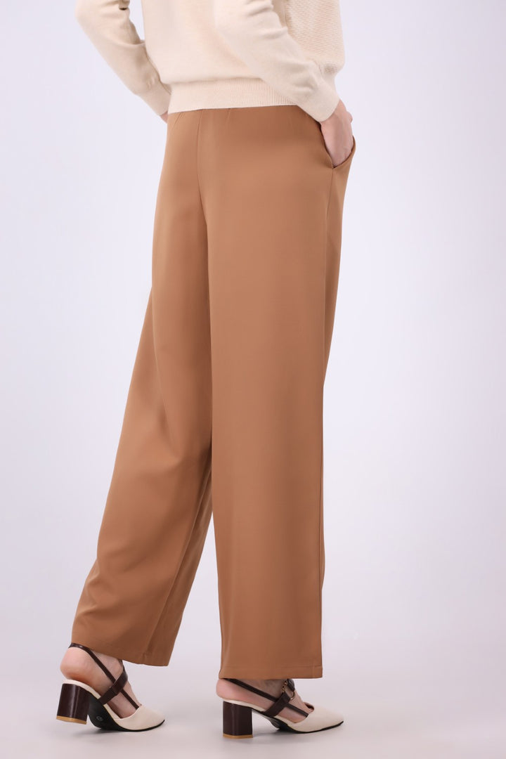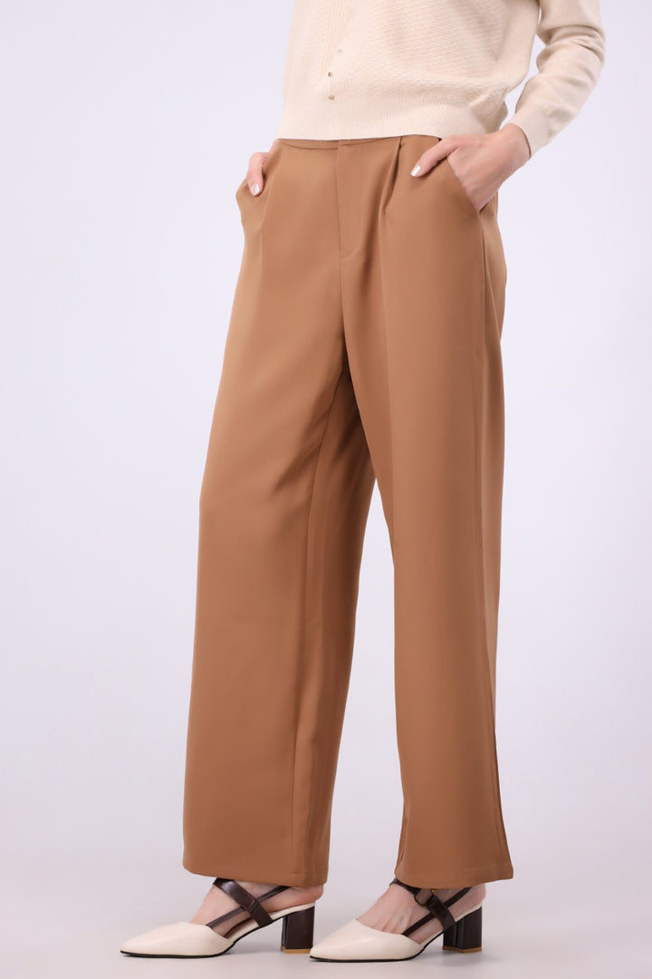 WOVEN WIDE-LEG TROUSER WITH A ZIP FLY WITH FRONT BUTTON CLOSURE, SIDE POCKETS AND FRONT PLEATS