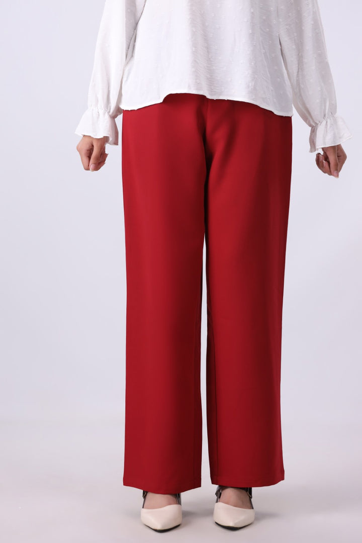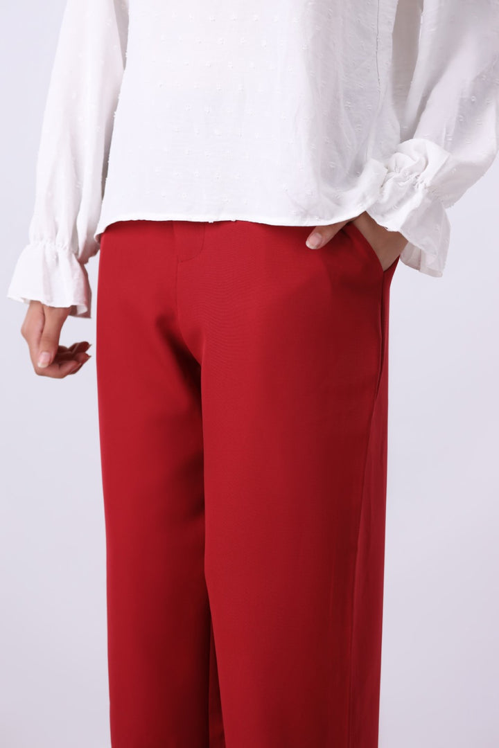 WOVEN WIDE-LEG TROUSER WITH A ZIPPER FLY WITH FRONT BUTTON CLOSURE, SIDE POCKETS AND BELT LOOPS ON WAISTBAND